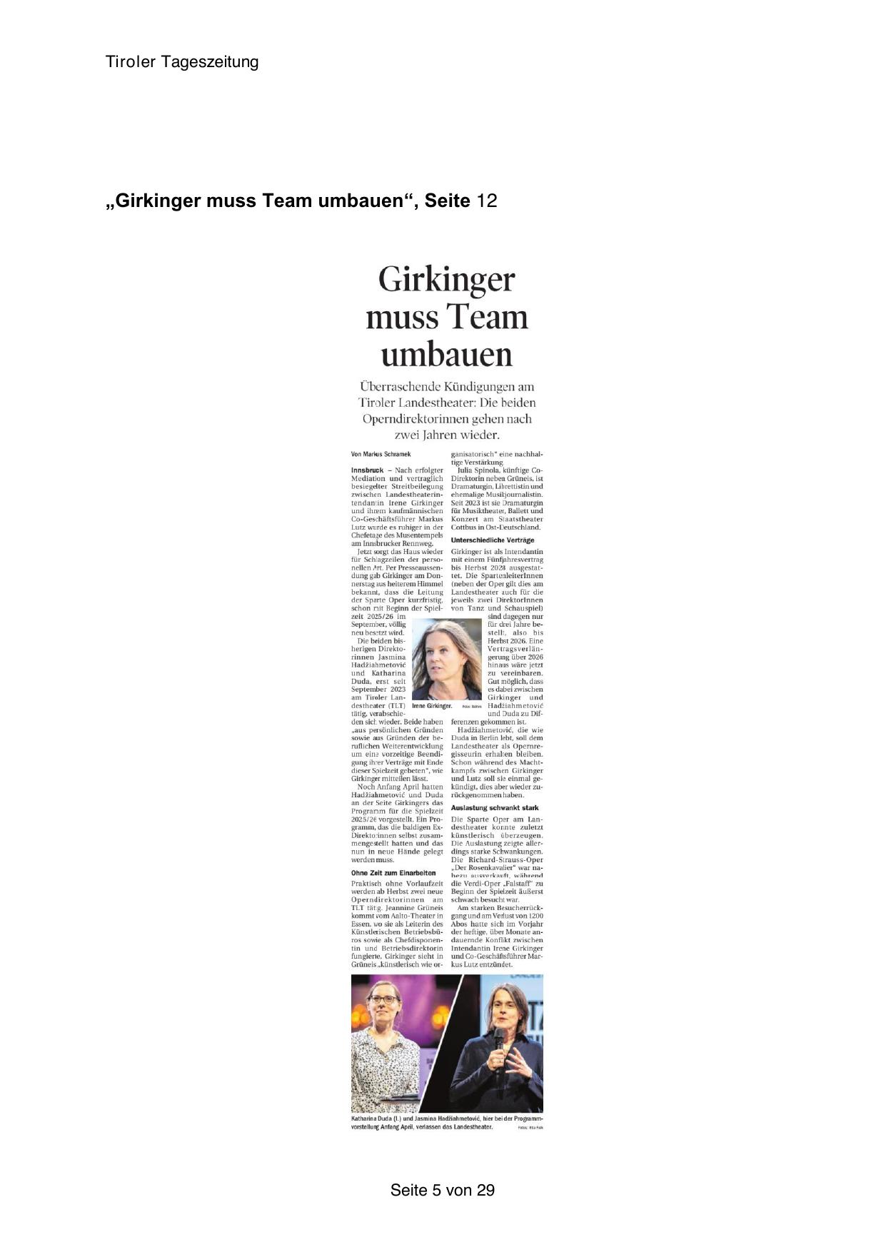 für Schlagzeilen der personellen Art. Per Presseaussendung gab Girkinger am Donnerstag aus heiterem Himmel