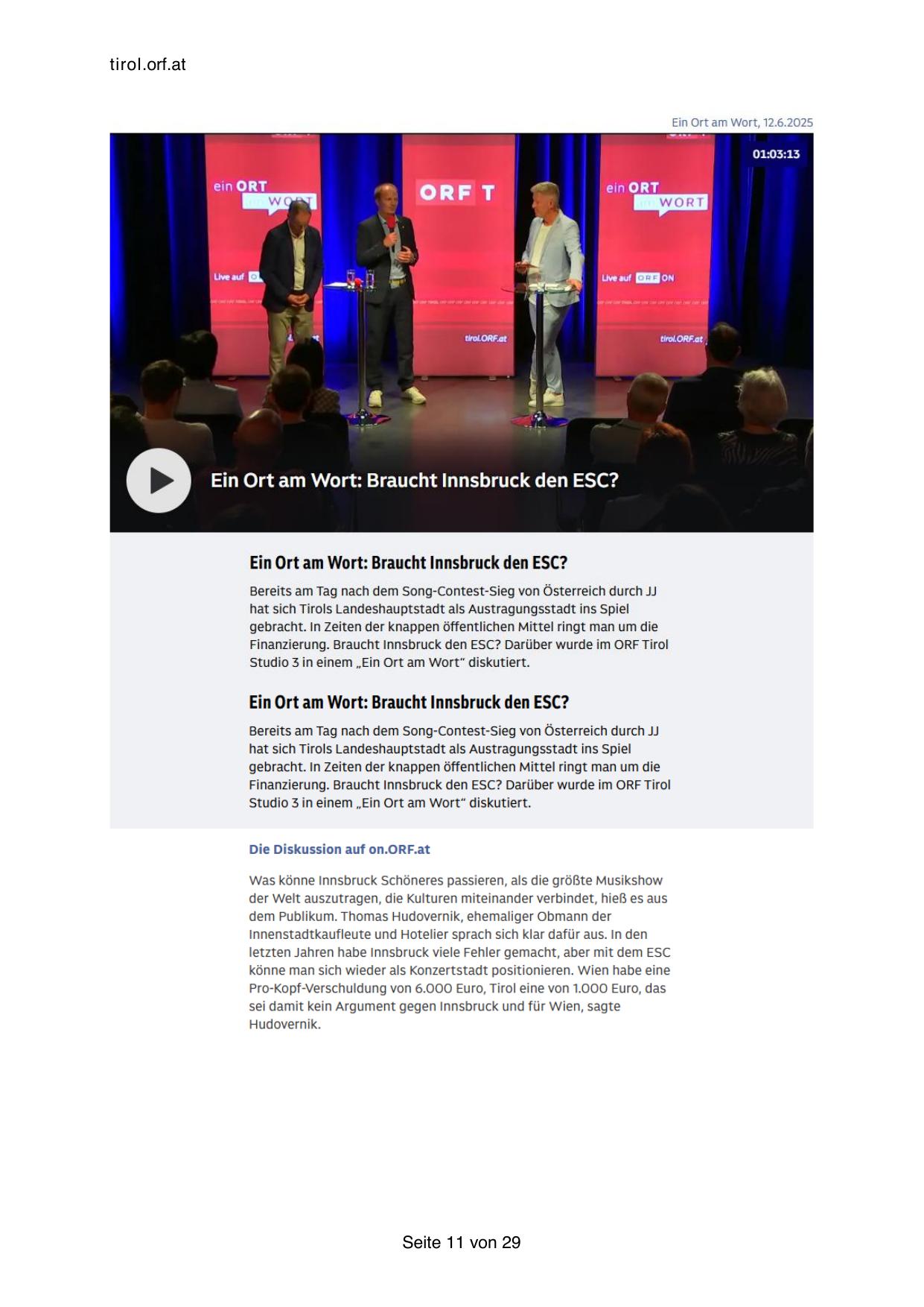 Finanzierung. Braucht Innsbruck den ESC? Darüber wurde im ORF Tirol