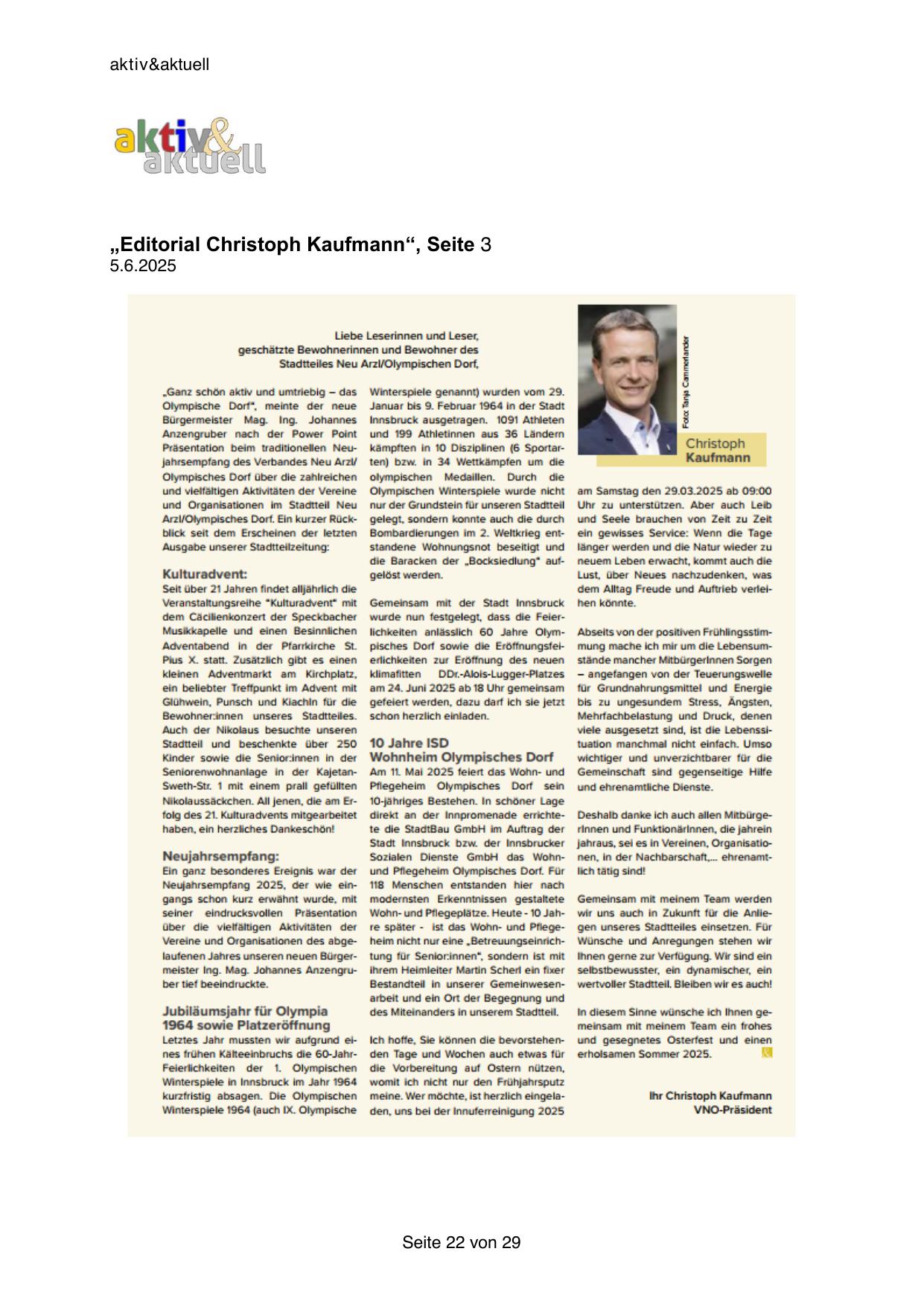 ArzV/Olympisches Dorf. Ein kurzer Rückblick seit dem Erscheinen der letzten