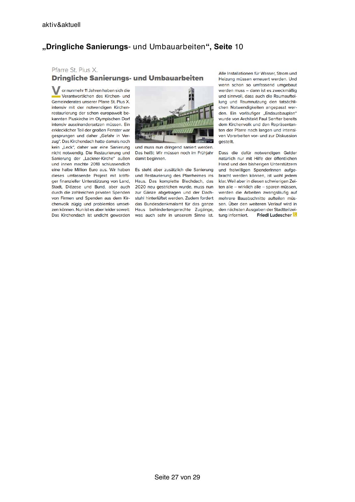 von Firmen und Spenden aus dem Kirchenvolk zügig und problemlos umsetzen können. Nun ist es aber leider soweit: