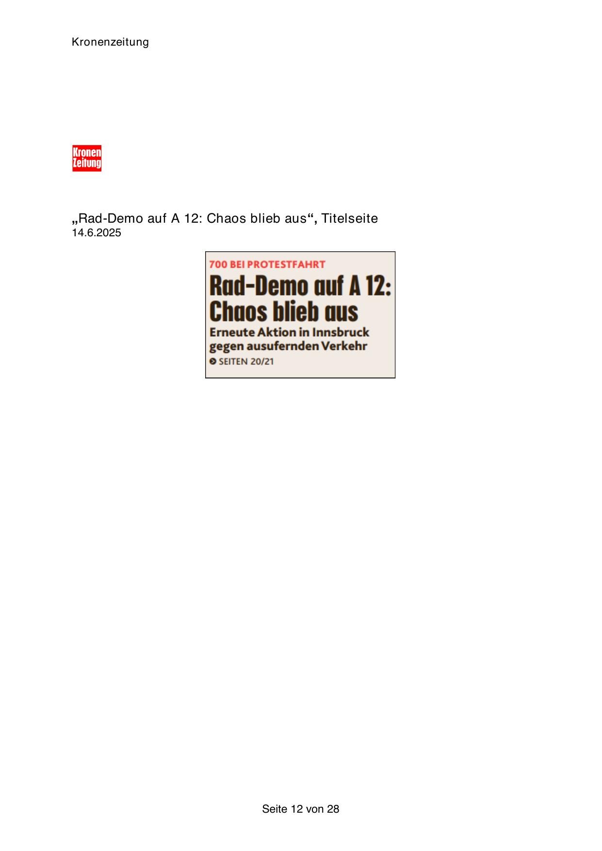 „Rad-Demo auf A 12: Chaos blieb aus“, Titelseite