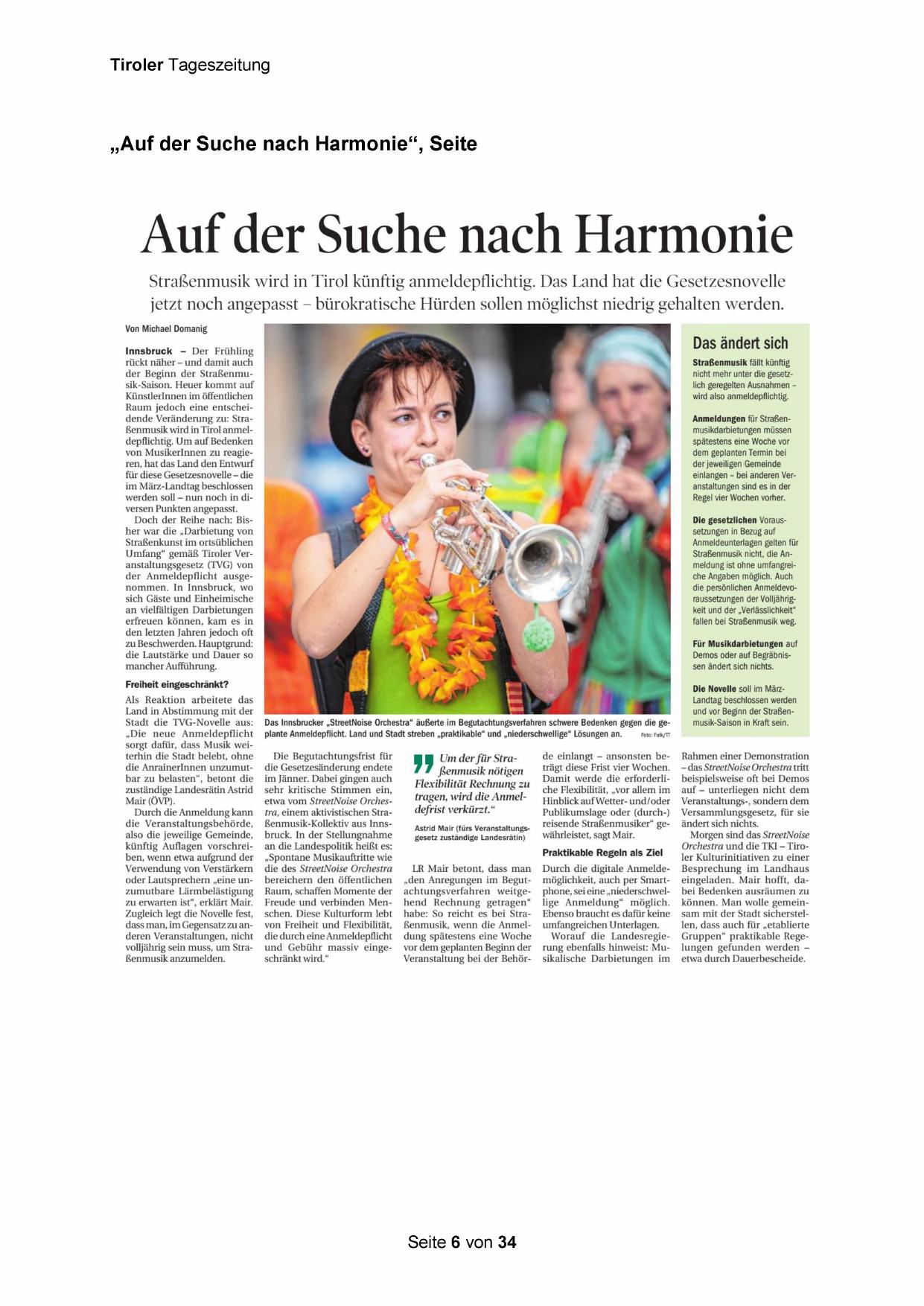 Raum jedoch eine entscheidende Veränderung zu: Straßenmusik wird in Tirol anmeldepflichtig. Um auf Bedenken