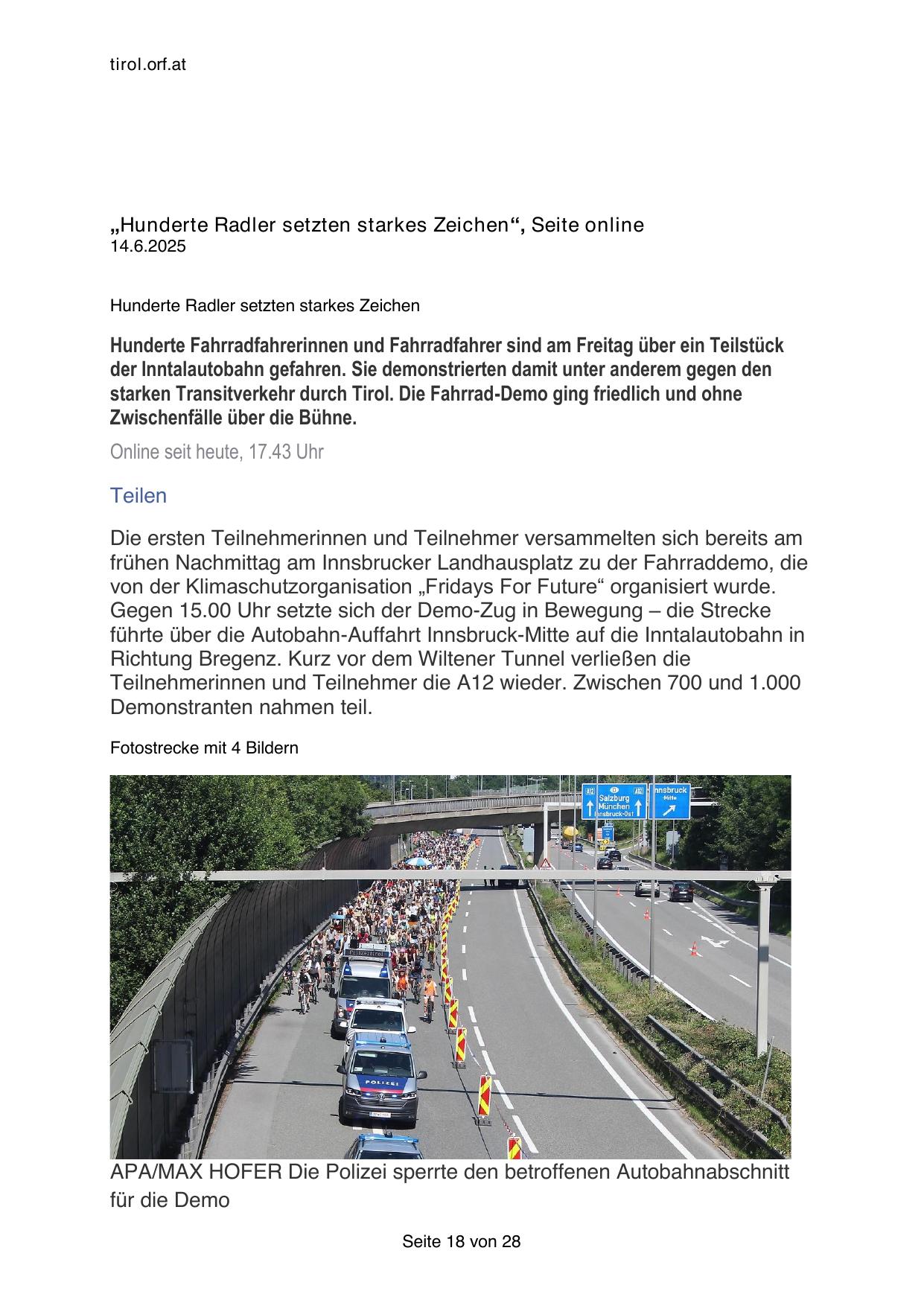 „Hunderte Radler setzten starkes Zeichen“, Seite online