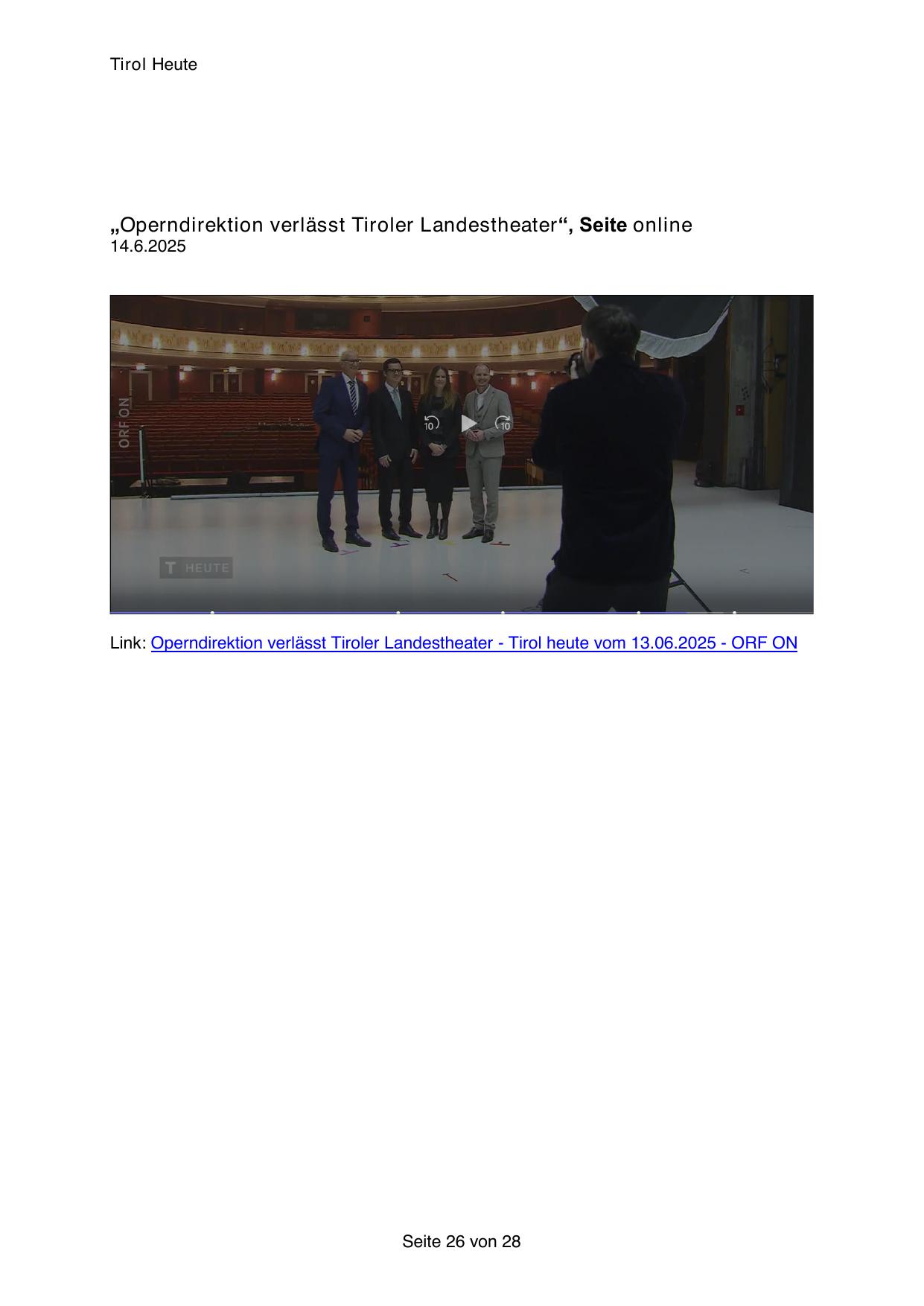Link: Operndirektion verlässt Tiroler Landestheater - Tirol heute vom 13.06.2025 - ORF ON