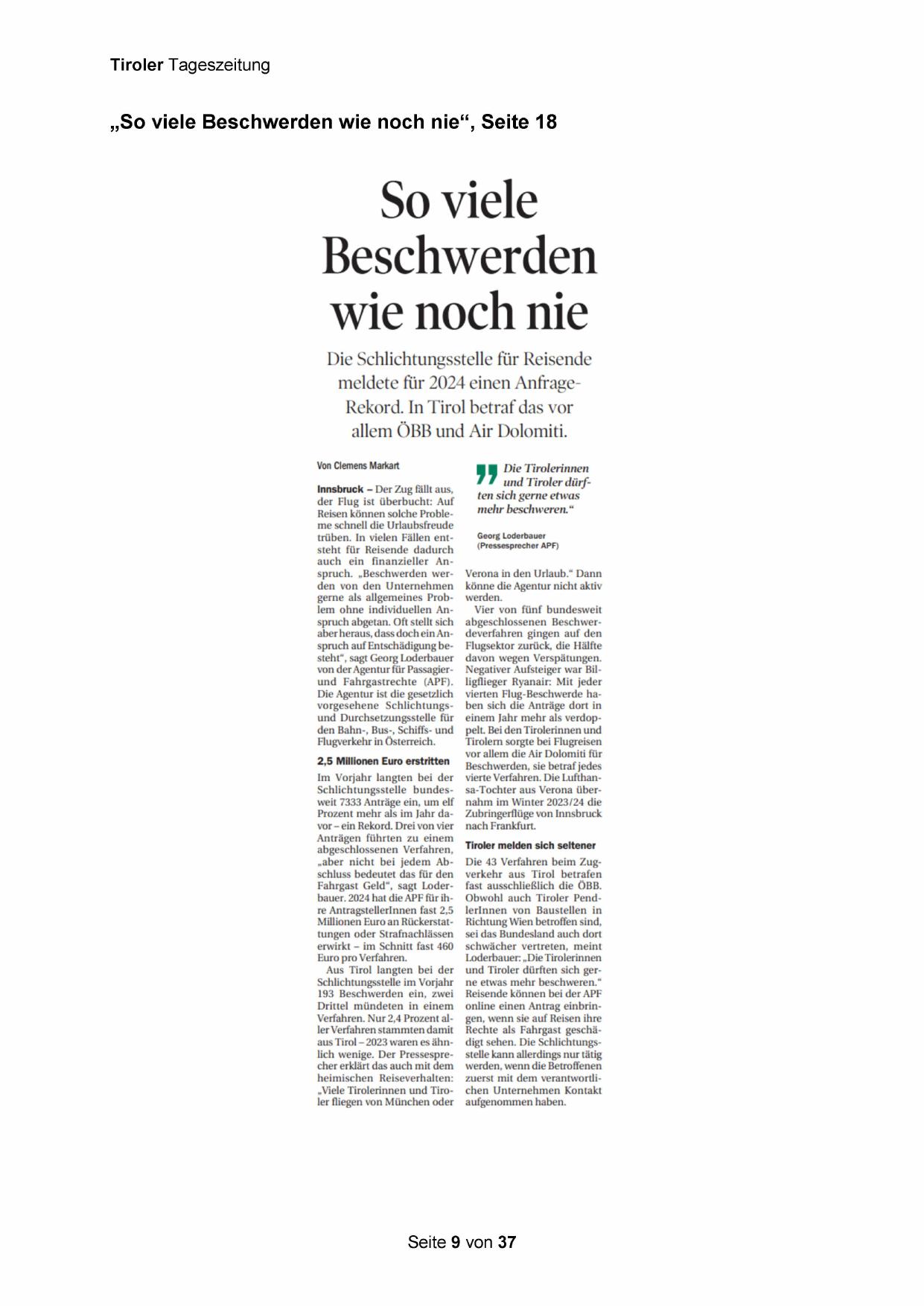 von der Agentur für Passagierund Fahrgastrechte (APF).