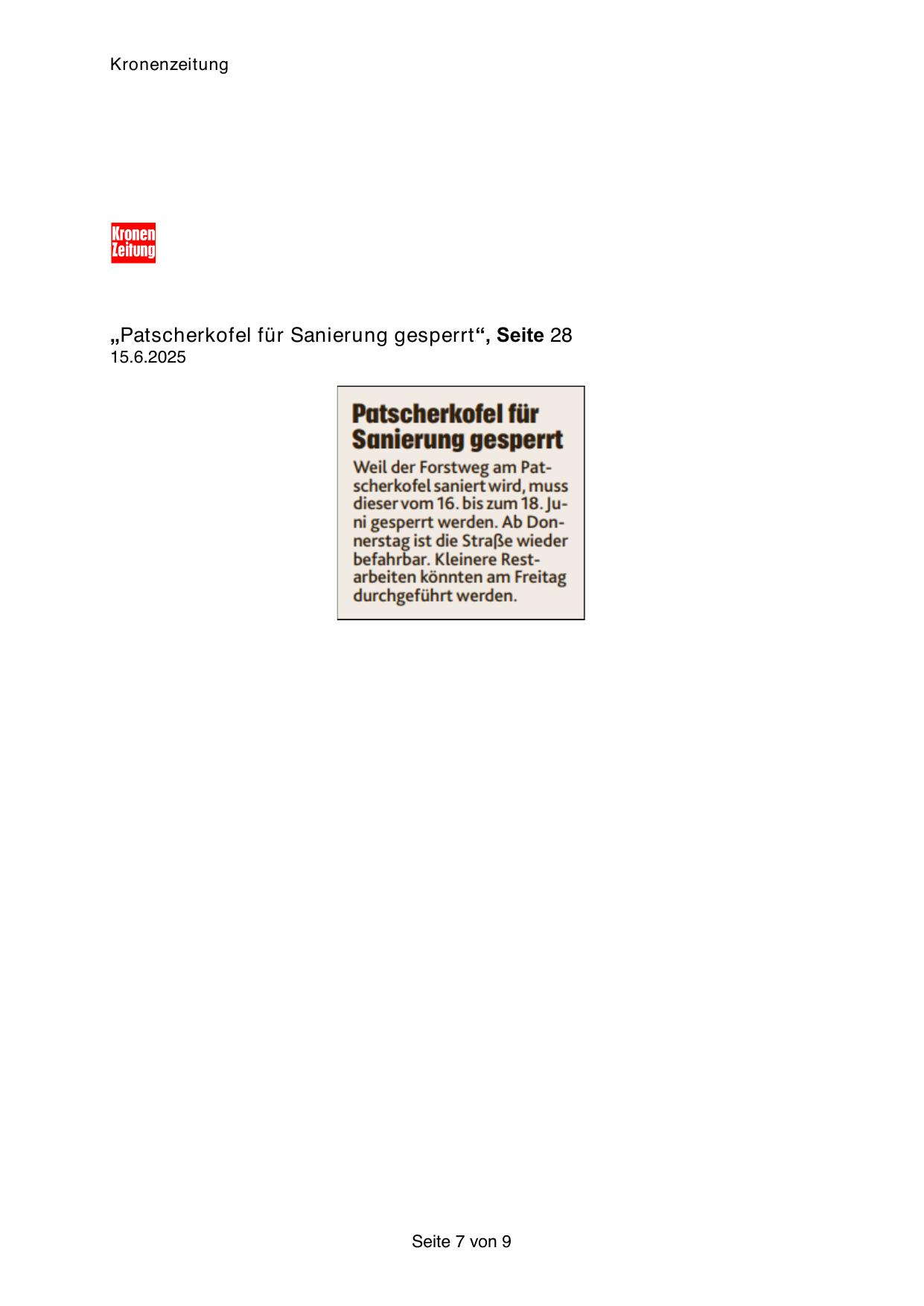 „Patscherkofel für Sanierung gesperrt“, Seite 28