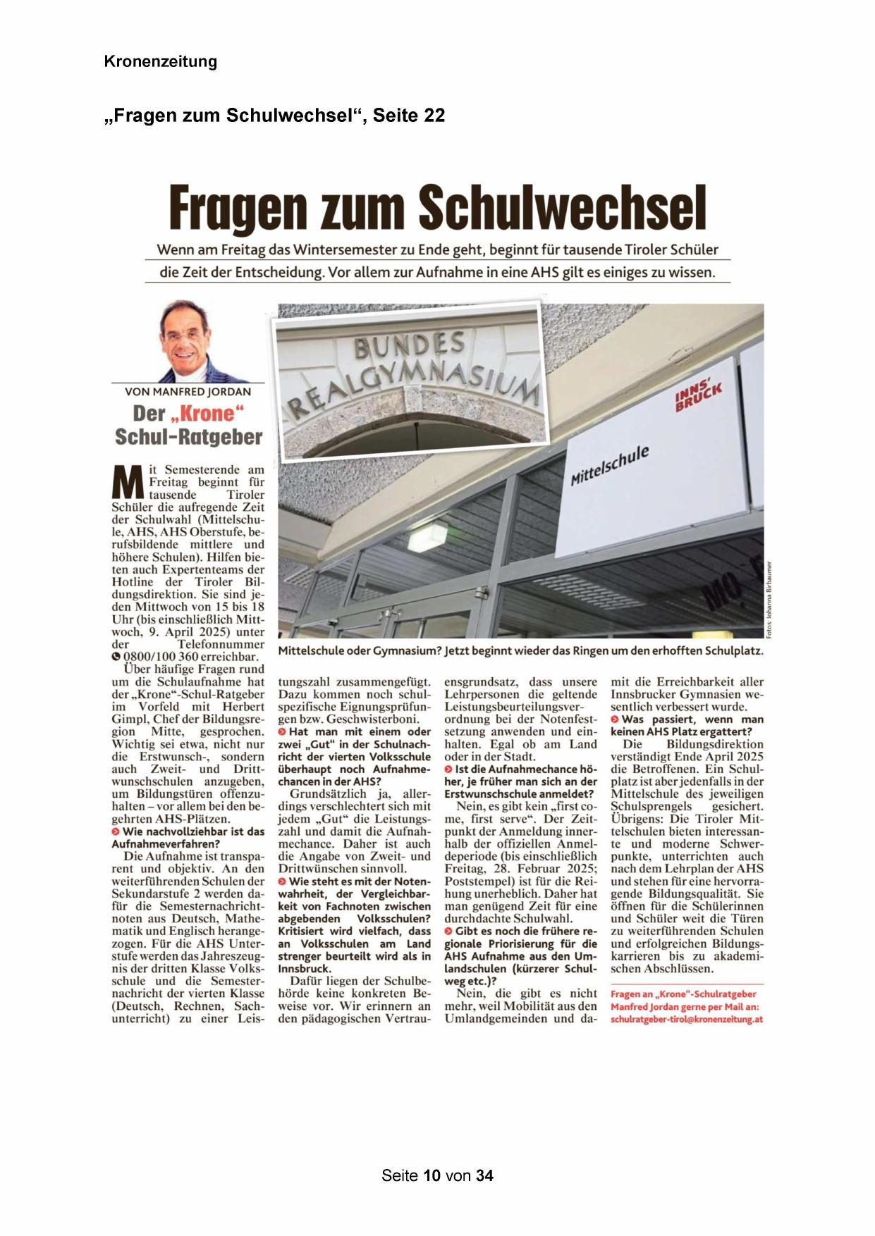 UÜbrigens: Die Tiroler Mittelschulen bieten interessante und moderne Schwerpunkte, unterrichten auch