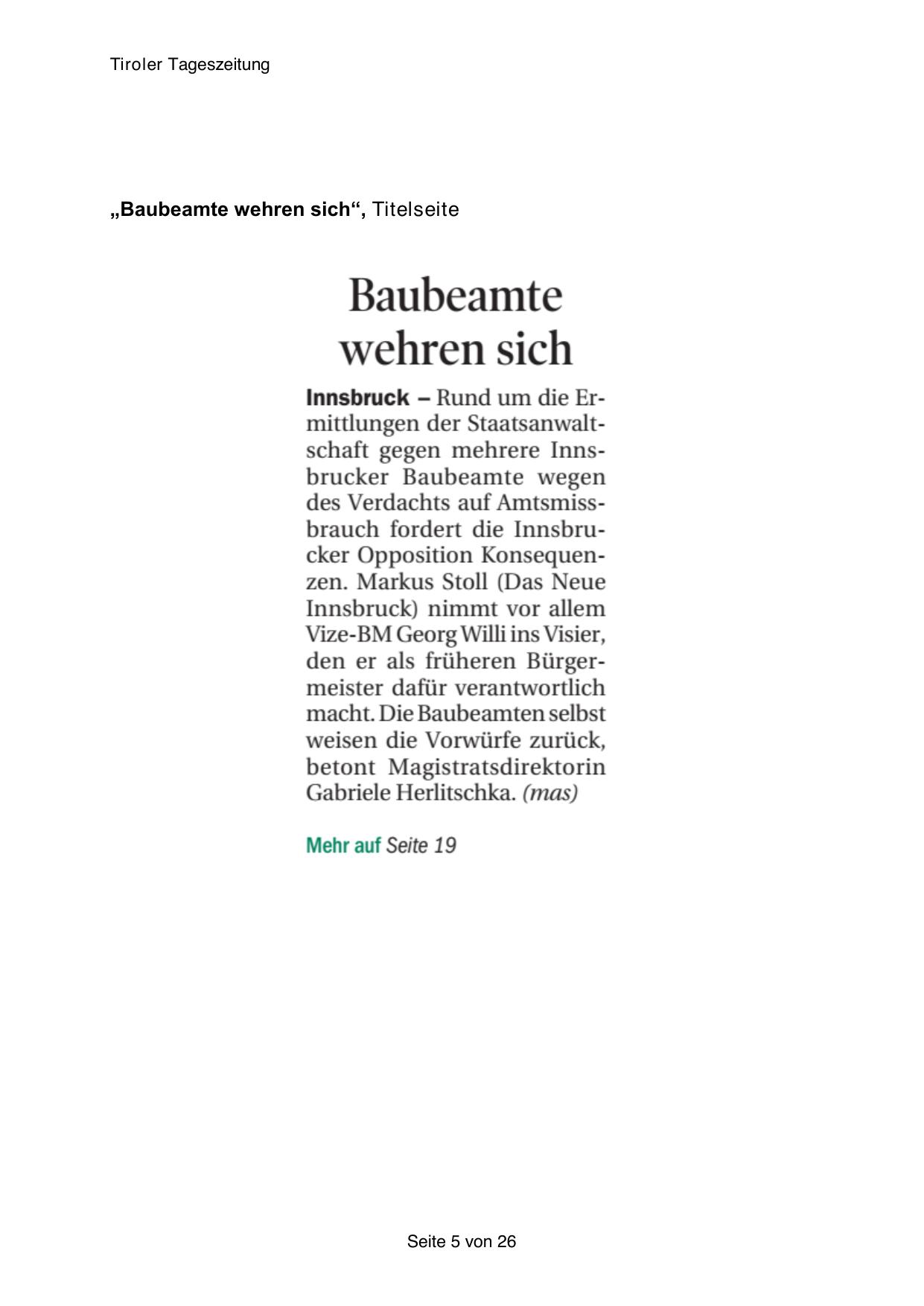 Innsbruck —- Rund um die Ermittlungen der Staatsanwaltschaft gegen mehrere Innsbrucker Baubeamte wegen