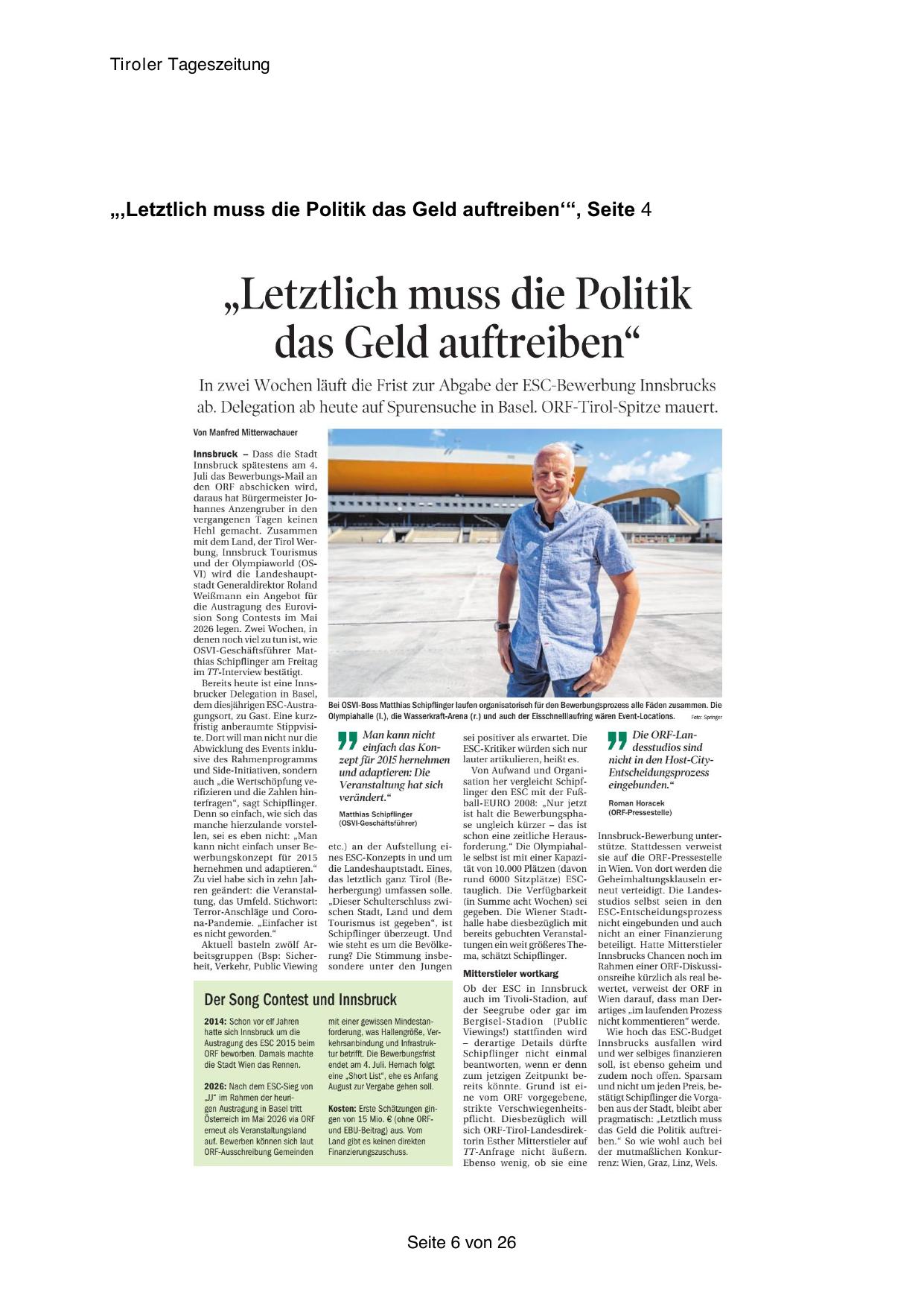 Innsbruck-Bewerbung unterstütze. Stattdessen verweist