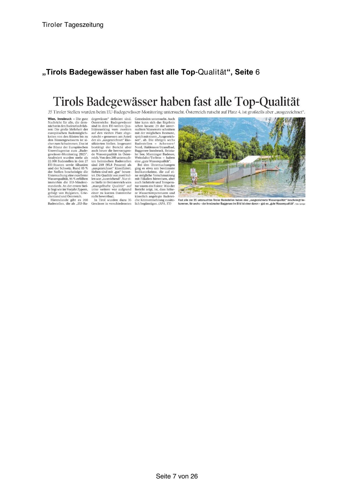 „Tirols Badegewässer haben fast alle Top-Qualität‘“, Seite 6