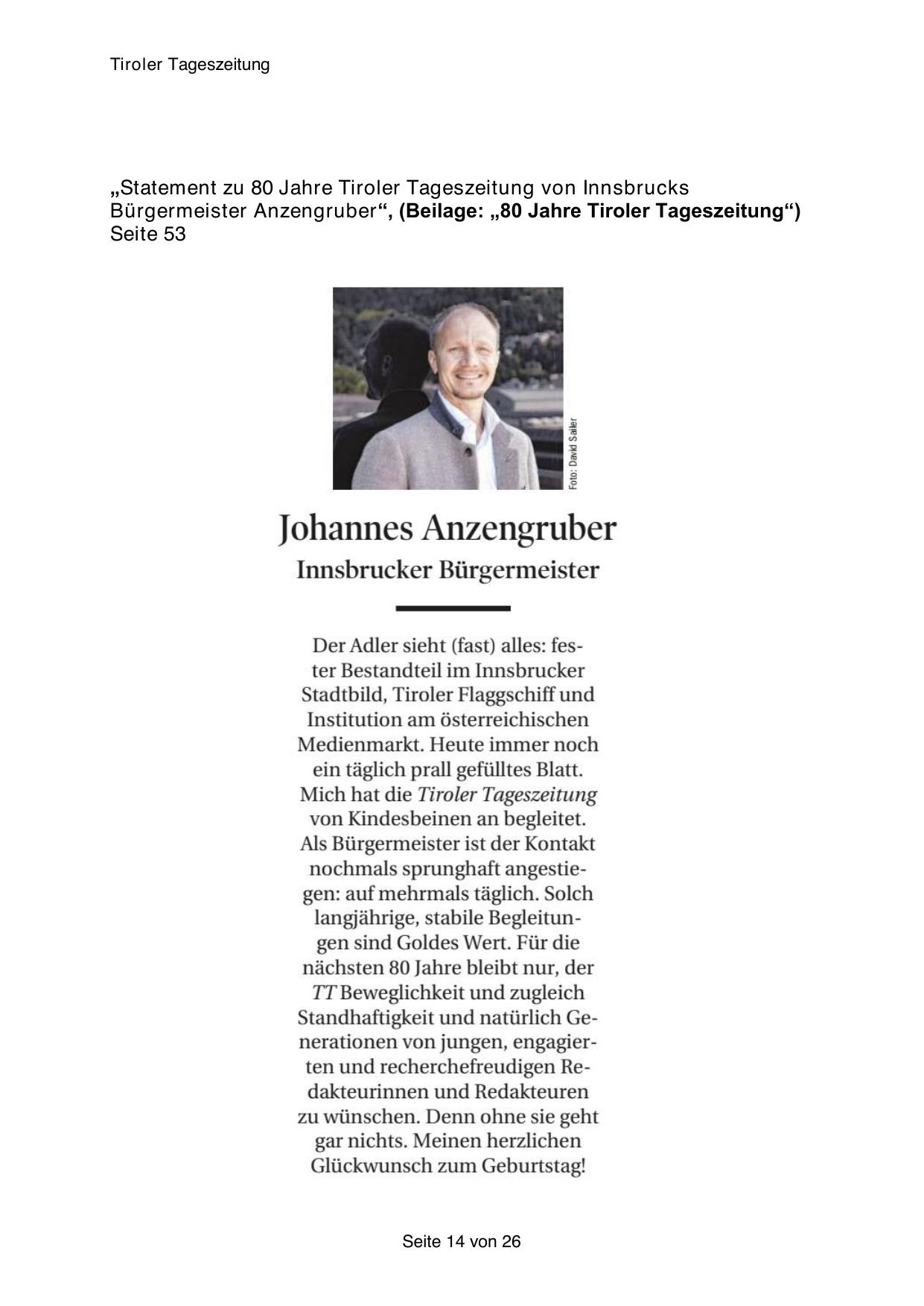 „Statement zu 80 Jahre Tiroler Tageszeitung von Innsbrucks