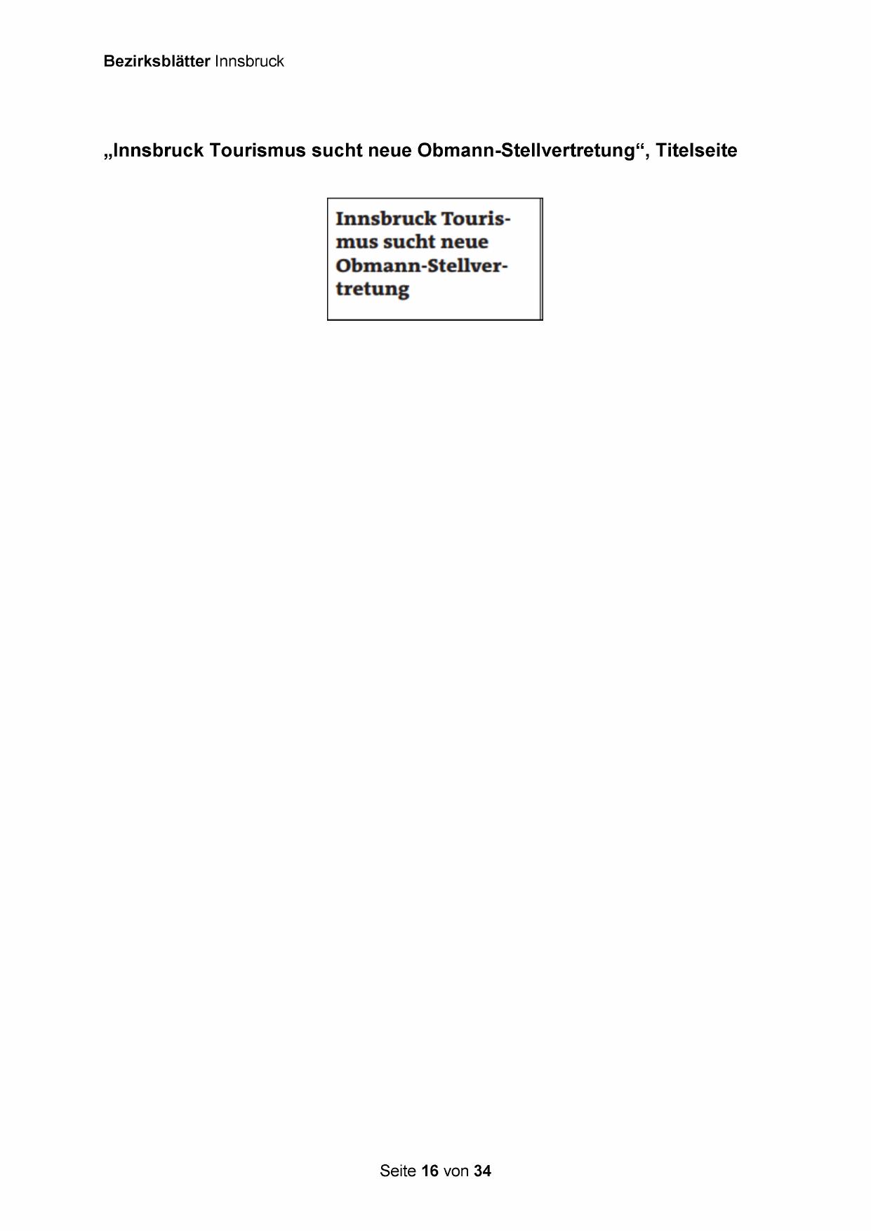 „Innsbruck Tourismus sucht neue Obmann-Stellvertretung“, Titelseite