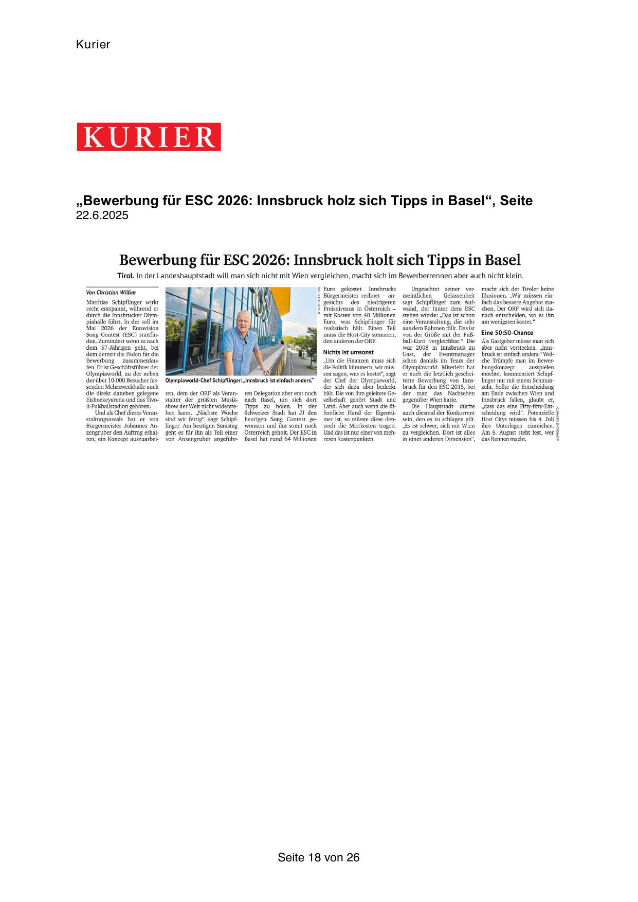 „Bewerbung für ESC 2026: Innsbruck holz sich Tipps in Basel“, Seite