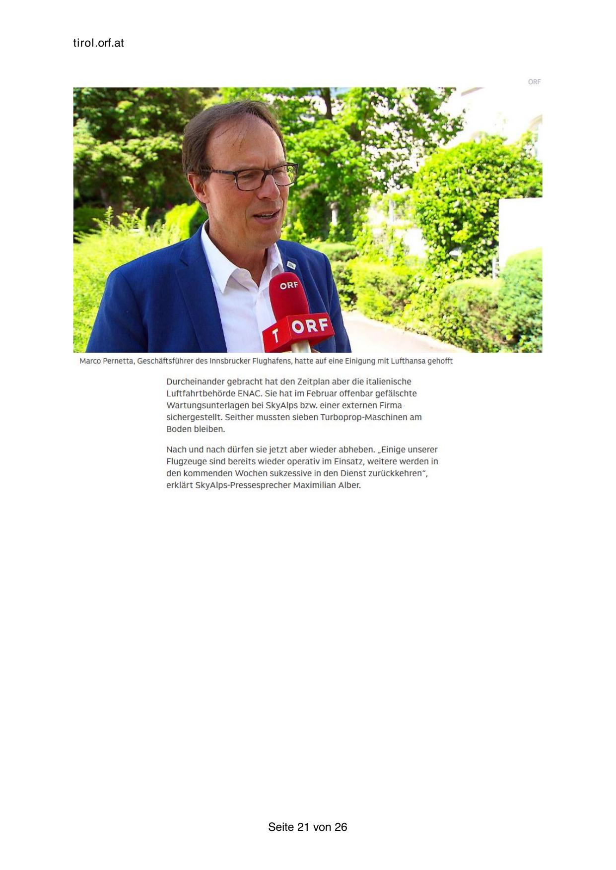 Marco Pernetta, Geschäftsführer des Innsbrucker Flughafens, hatte auf eine Einigung mit Lufthansa gehofft