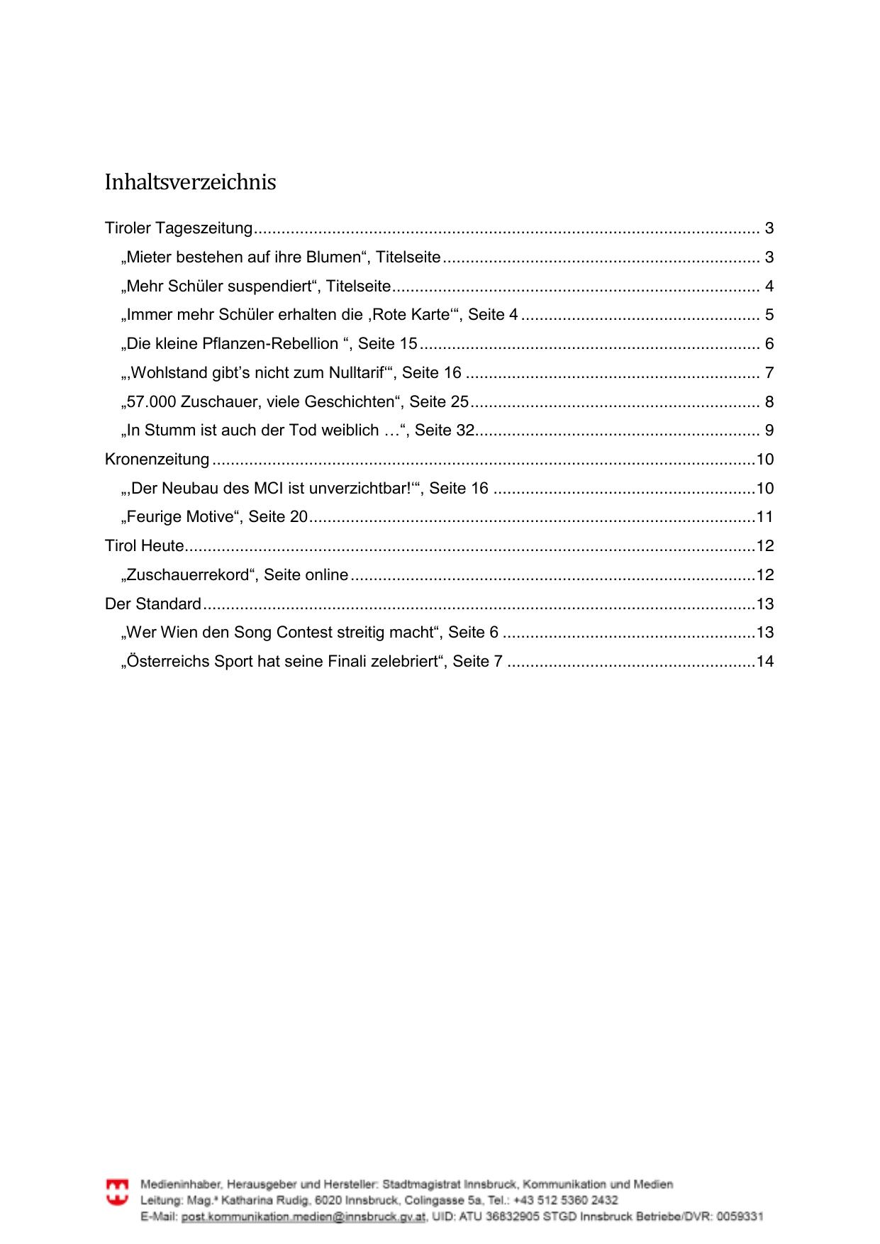 FPYY Medieninhaber, Herausgeber und Hersteller: Stadtmagistrat Innsbruck, Kommunikation und Medien