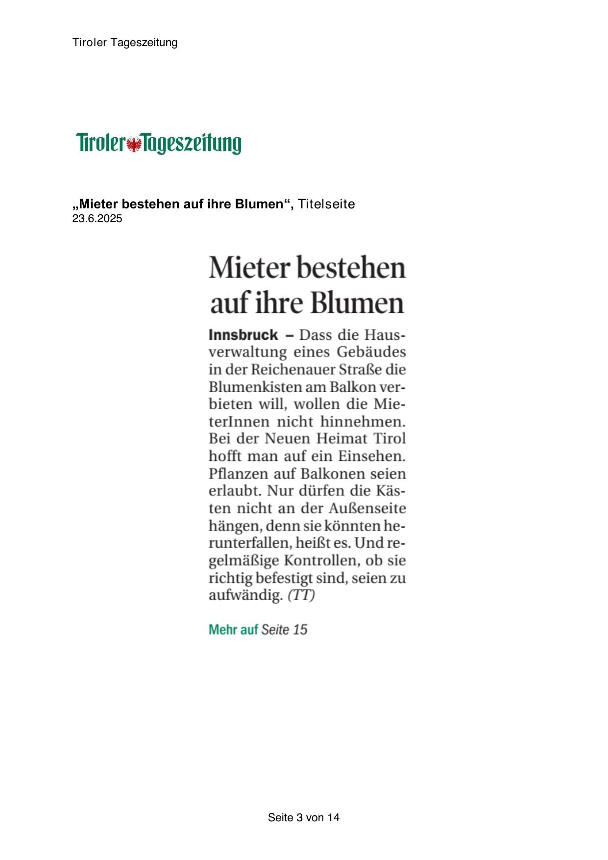 Blumenkisten am Balkon verbieten will, wollen die MieterInnen nicht hinnehmen.