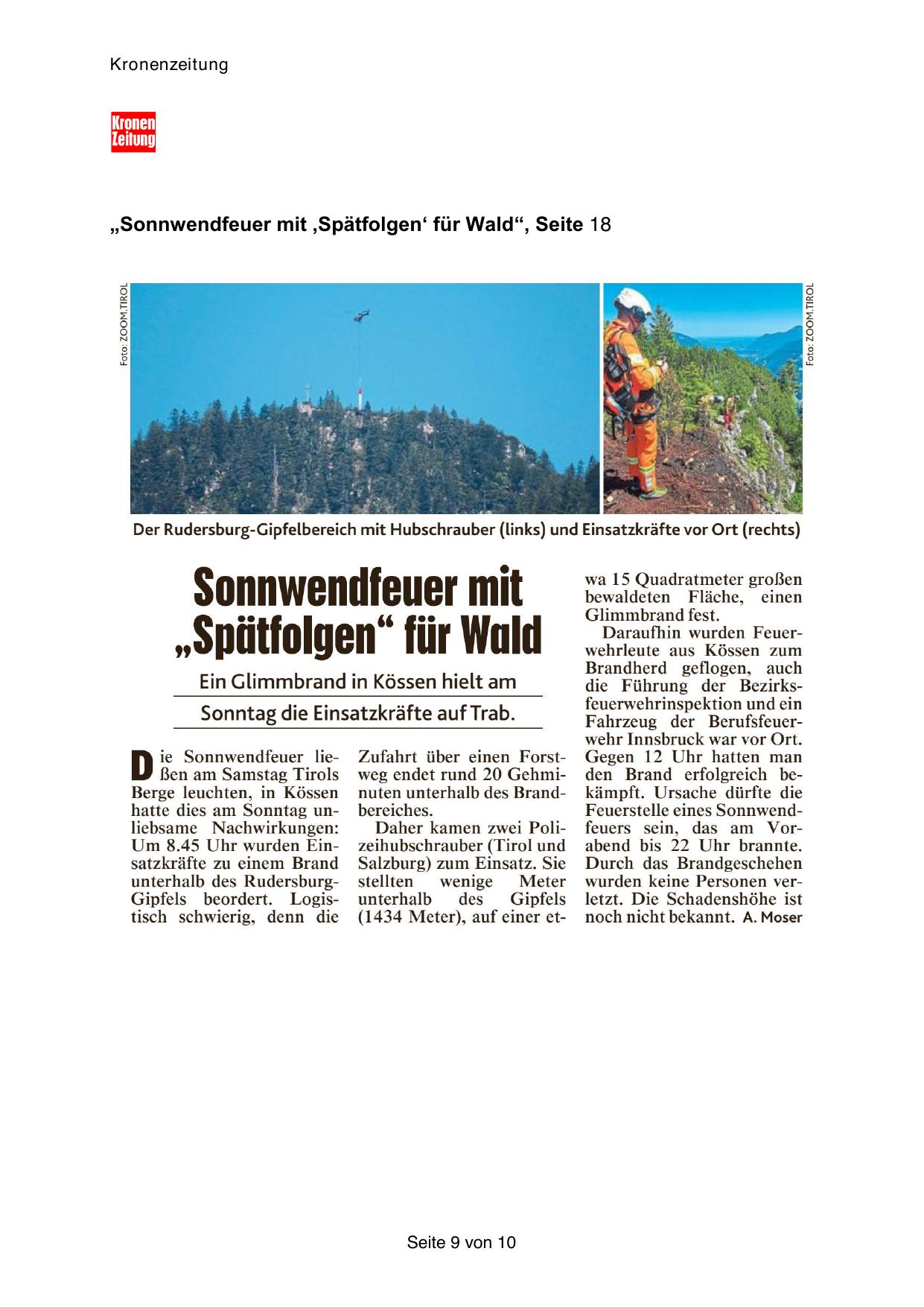 „Sonnwendfeuer mit ‚Spätfolgen‘ für Wald“, Seite 18