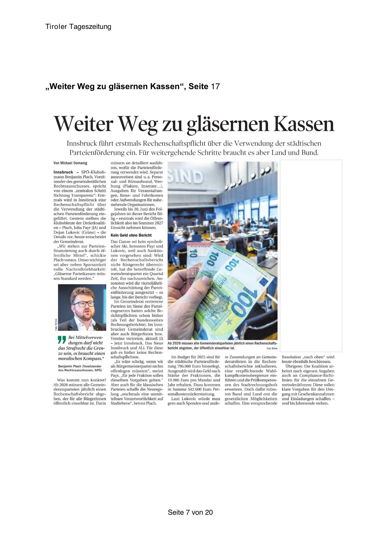 Rechnungsberichte). Im Innsbrucker Gemeinderat sind