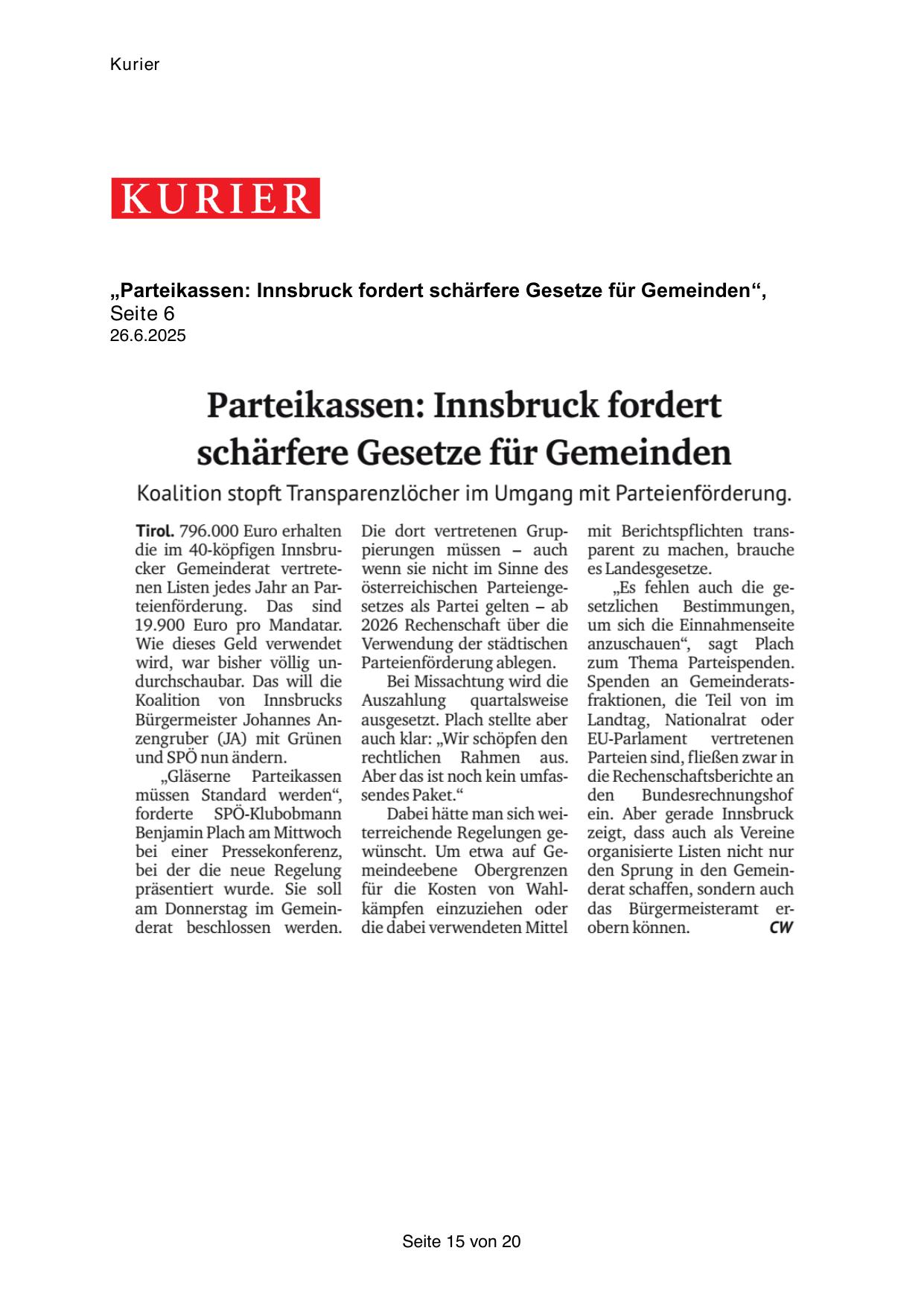 „Parteikassen: Innsbruck fordert schärfere Gesetze für Gemeinden“,