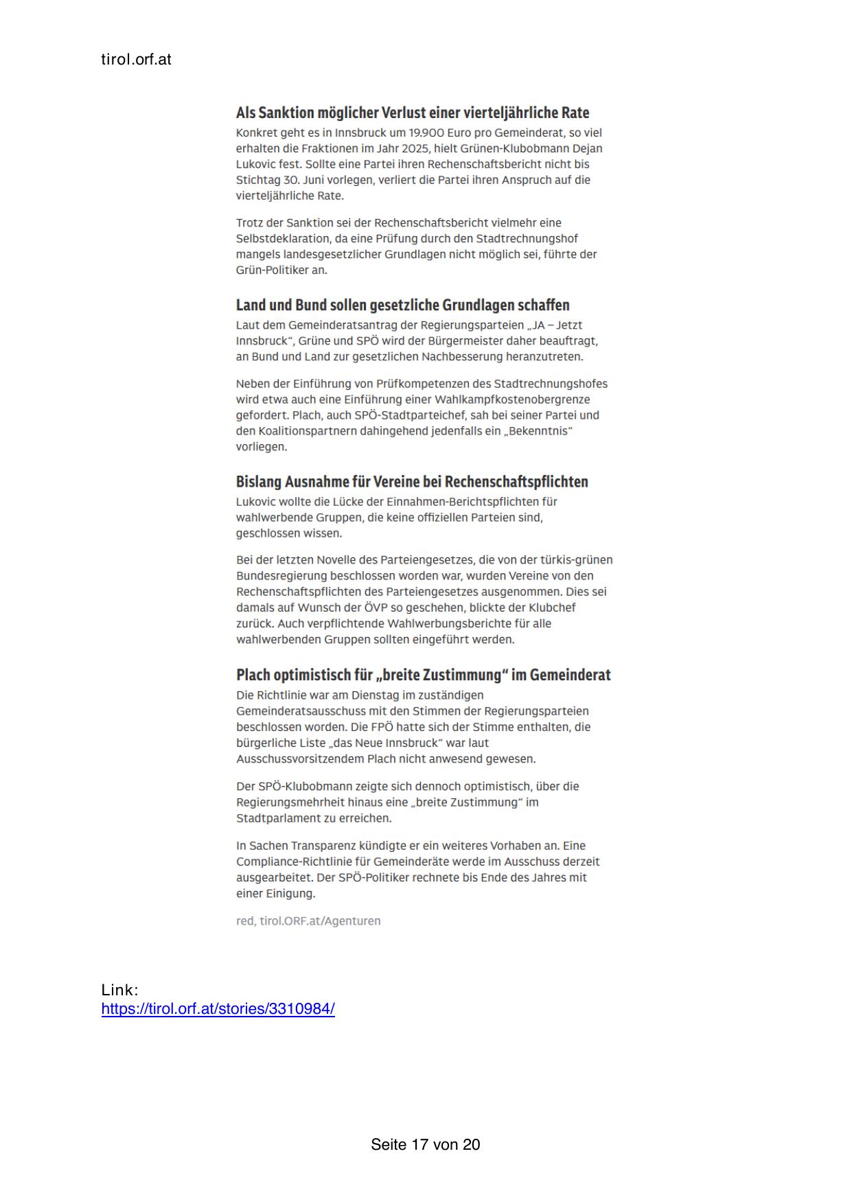 Innsbruck“, Grüne und SPÖ wird der Bürgermeister daher beauftragt,