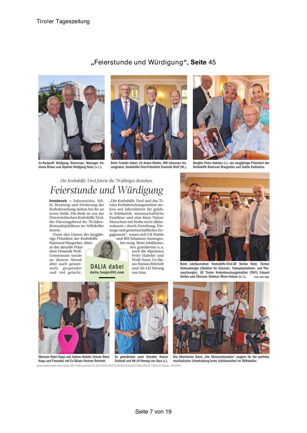 Die Krebshilfe Tirol feierte ihr 70-jähriges Bestehen.