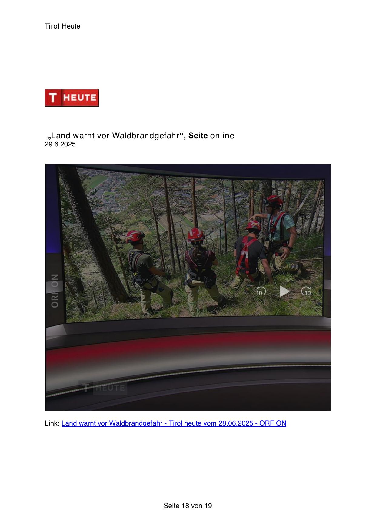 Link: Land warnt vor Waldbrandgefahr - Tirol heute vom 28.06.2025 - ORF ON