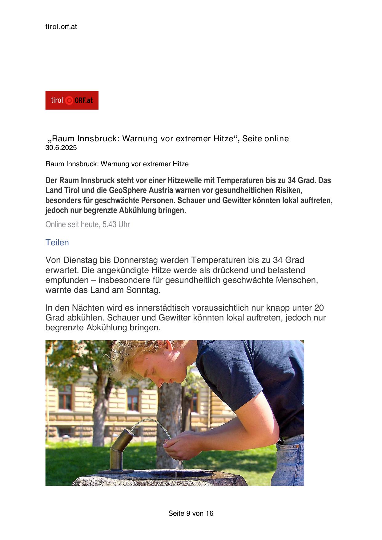 „Raum Innsbruck: Warnung vor extremer Hitze“, Seite online