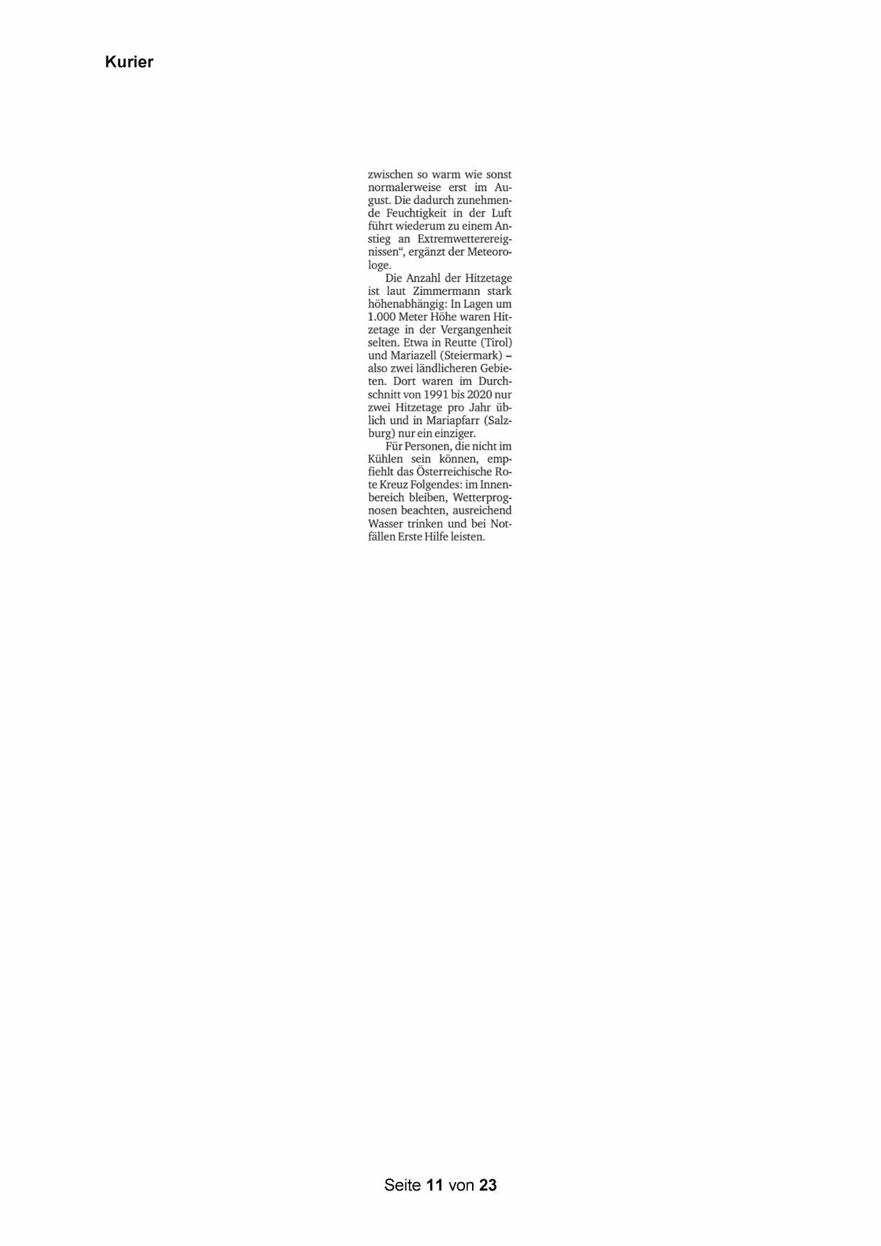 zwei Hitzetage pro Jahr üblich und in Mariapfarr (Salzburg) nur ein einziger.