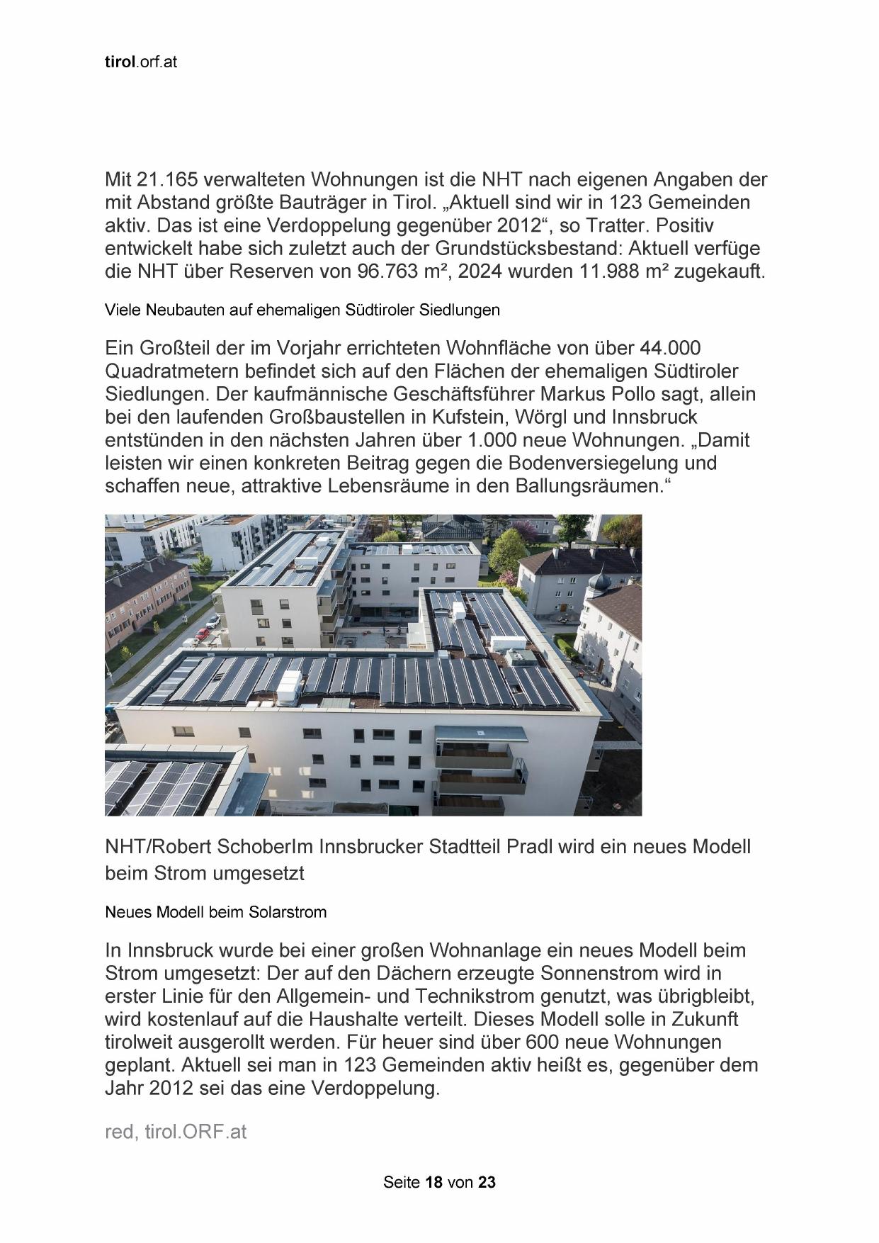 mit Abstand größte Bauträger in Tirol. „Aktuell sind wir in 123 Gemeinden