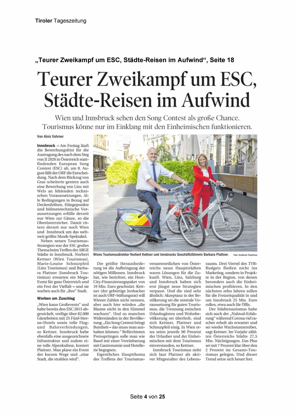 „Teurer Zweikampf um ESC, Städte-Reisen im Aufwind“, Seite 18