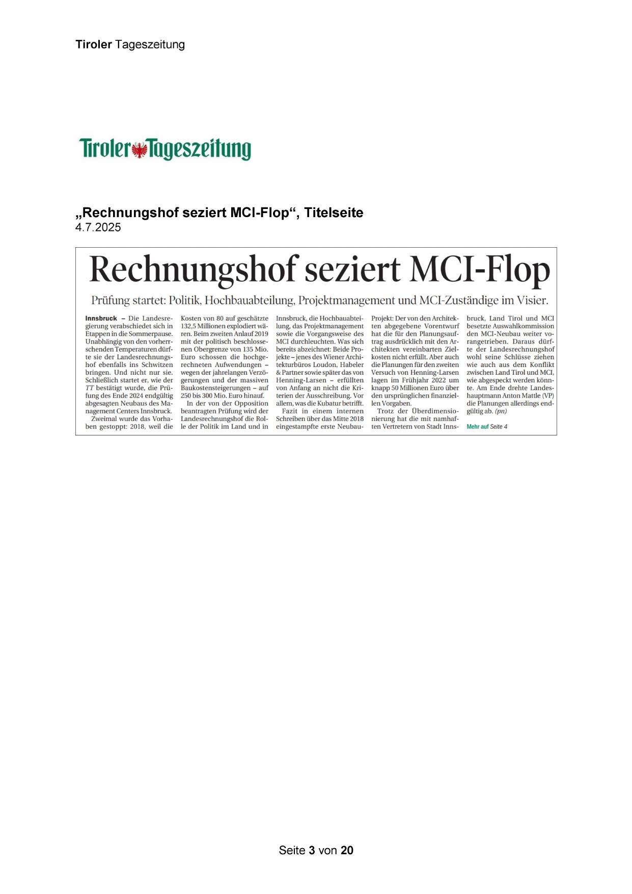 den MCI-Neubau weiter vorangetrieben. Daraus dürfte der Landesrechnungshof