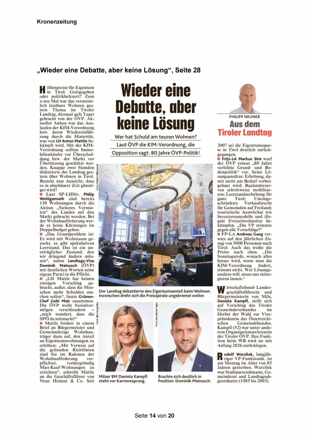 x-ten Mal war das vermeintlich leistbare Wohnen gestern Thema im Tiroler