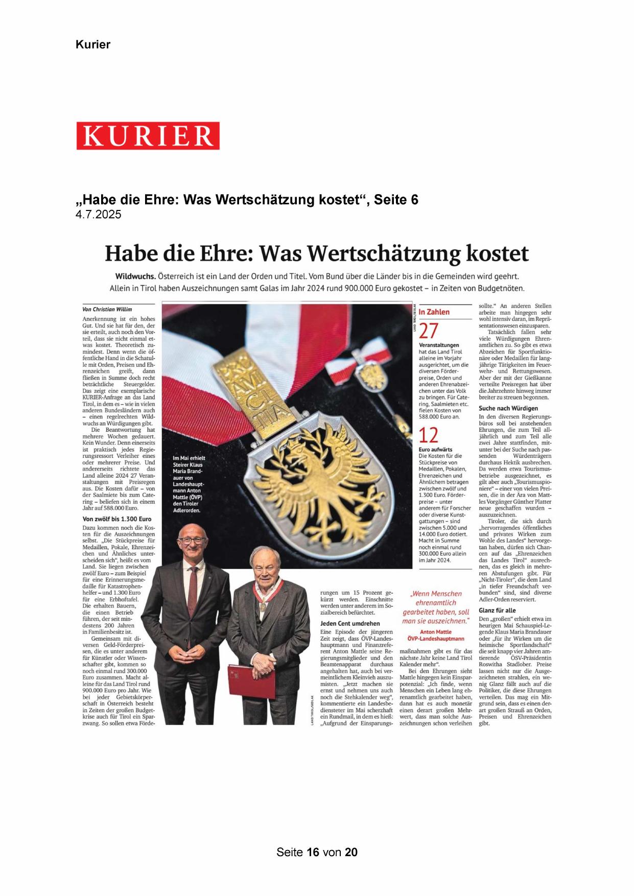 Allein in Tirol haben Auszeichnungen samt Galas im Jahr 2024 rund 900.000 Euro gekostet - in Zeiten von Budgetnöten.