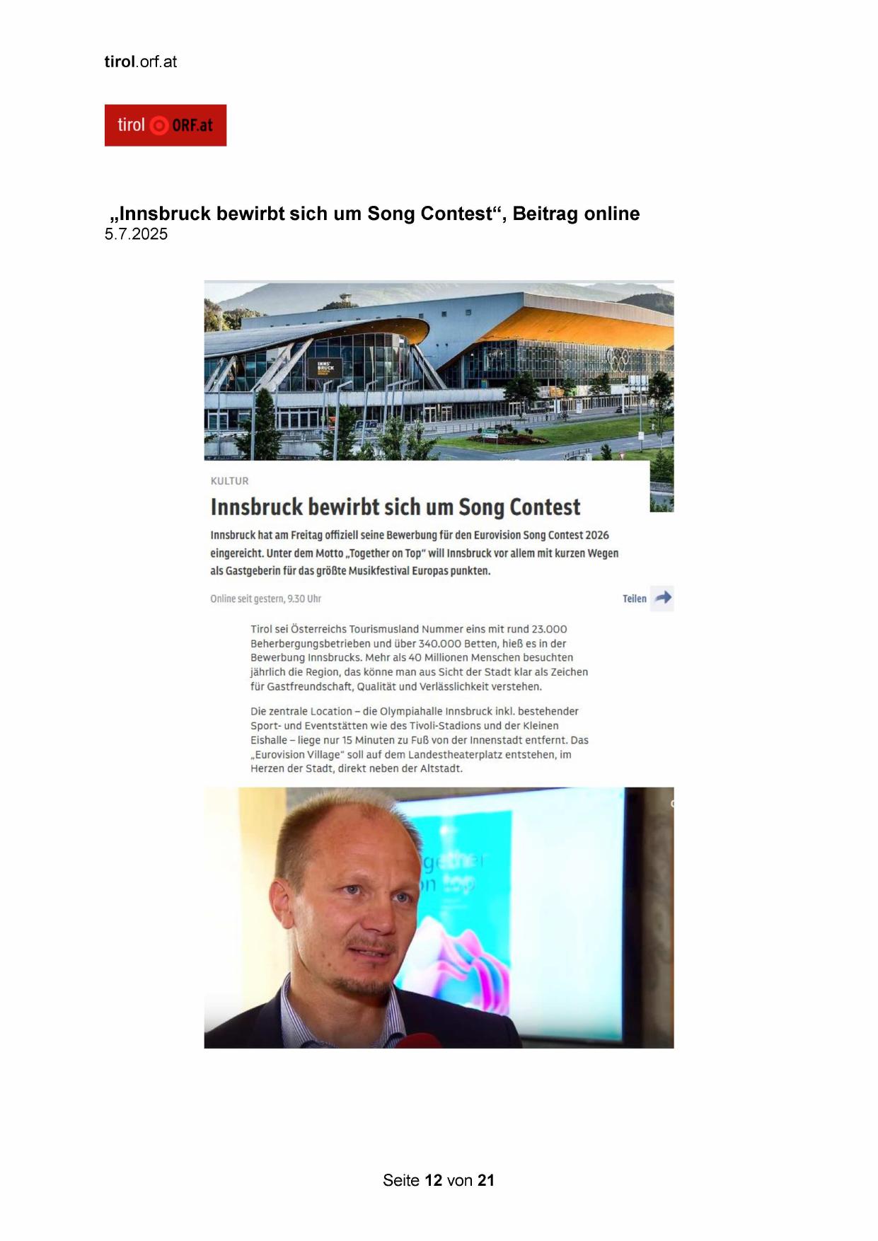 „Innsbruck bewirbt sich um Song Contest“, Beitrag online