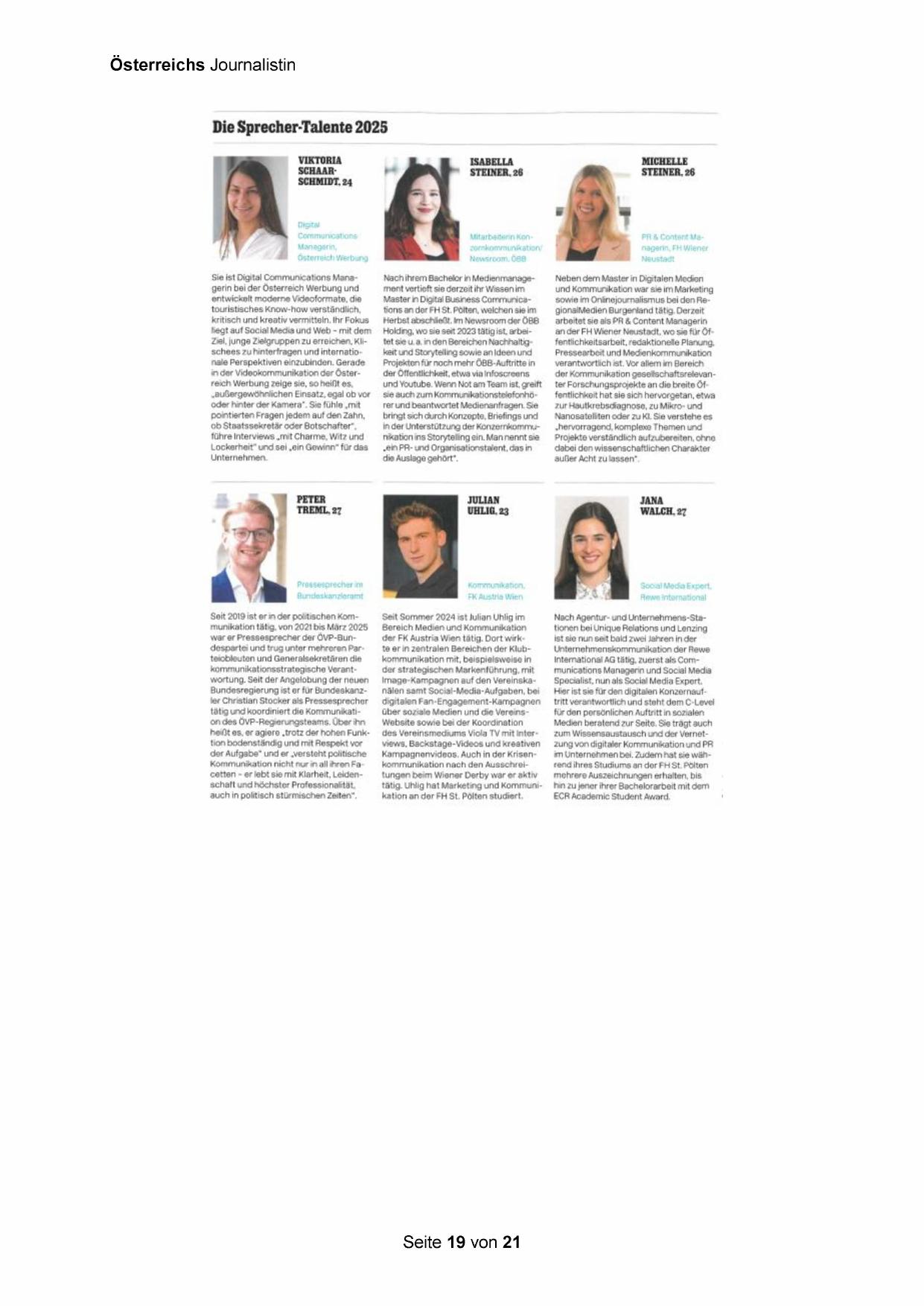 an der FH Wiener Neustadt, wo sie für Öffentlichkeitsarbeit, redaktionele Planung,