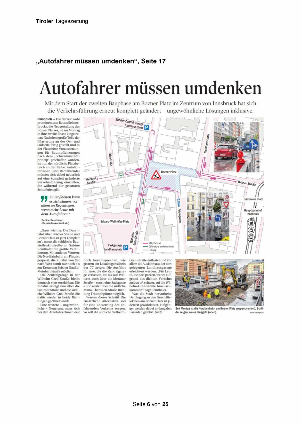 Mit dem Start der zweiten Bauphase am Bozner Platz im Zentrum von Innsbruck hat sich