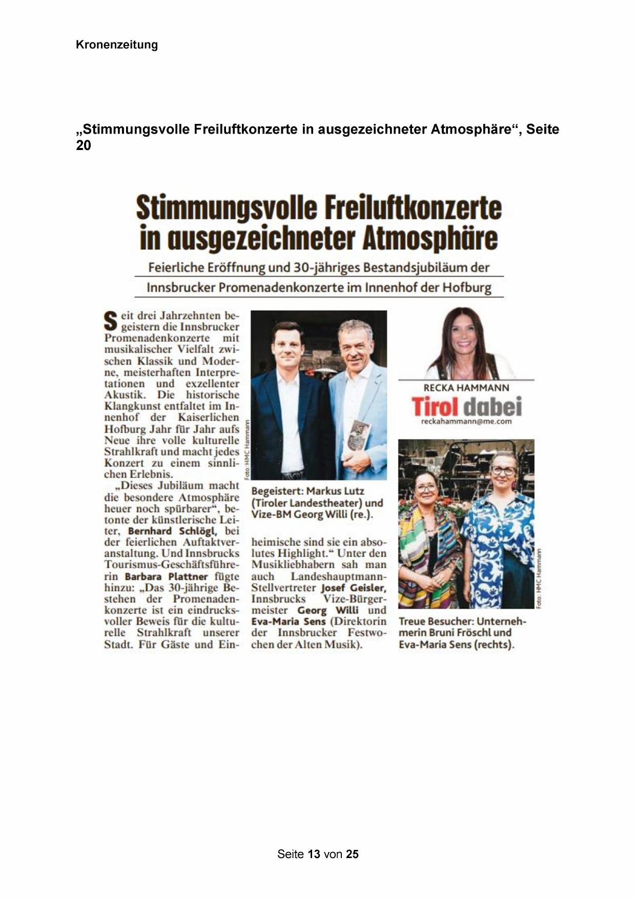 „Stimmungsvolle Freiluftkonzerte in ausgezeichneter Atmosphäre“, Seite