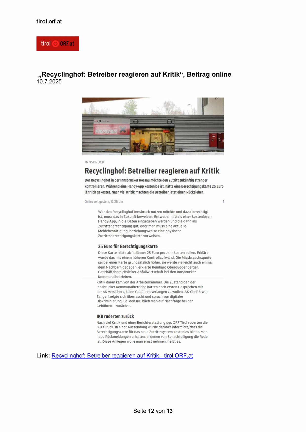 „Recyclinghof: Betreiber reagieren auf Kritik‘“, Beitrag online