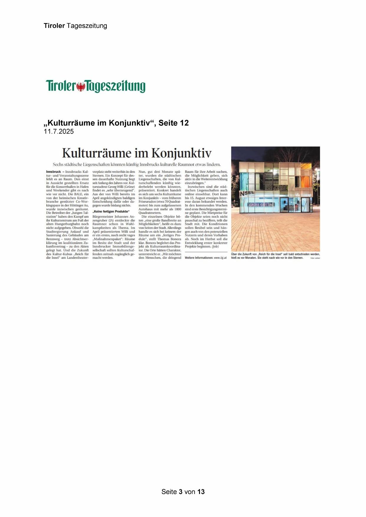 Innsbrucker Immobiliengesellschaft sollten Kulturschaffenden zeitnah zugänglich gemacht werden.