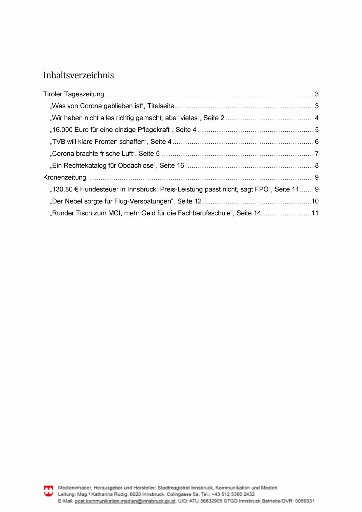 „130,80 € Hundesteuer in Innsbruck: Preis-Leistung passt nicht, sagt FPÖ“, Seite 11....... 9