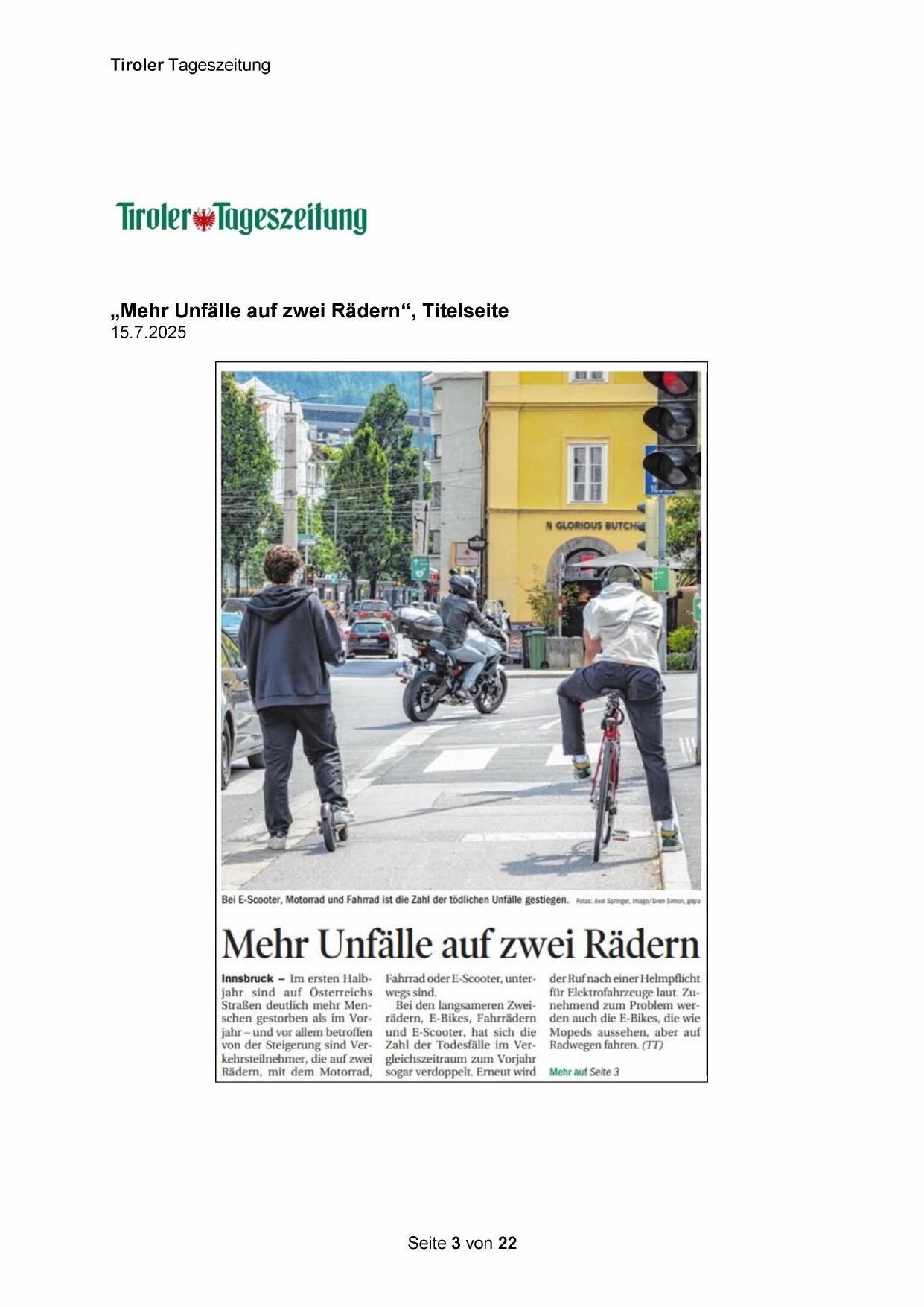 „Mehr Unfälle auf zwei Rädern“, Titelseite