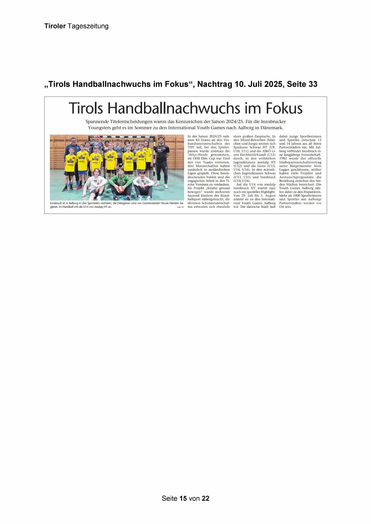 „Tirols Handballnachwuchs im Fokus“, Nachtrag 10. Juli 2025, Seite 33