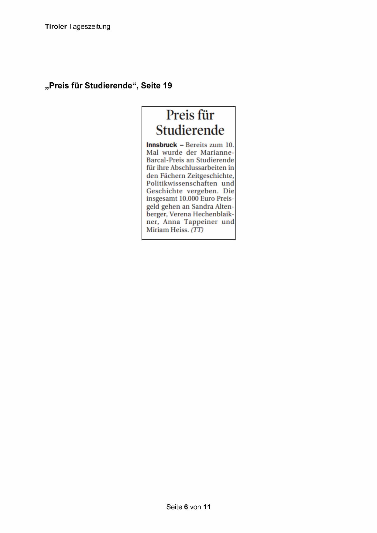 insgesamt 10.000 Euro Preisgeld gehen an Sandra Altenberger, Verena Hechenblaikner, Anna Tappeiner und