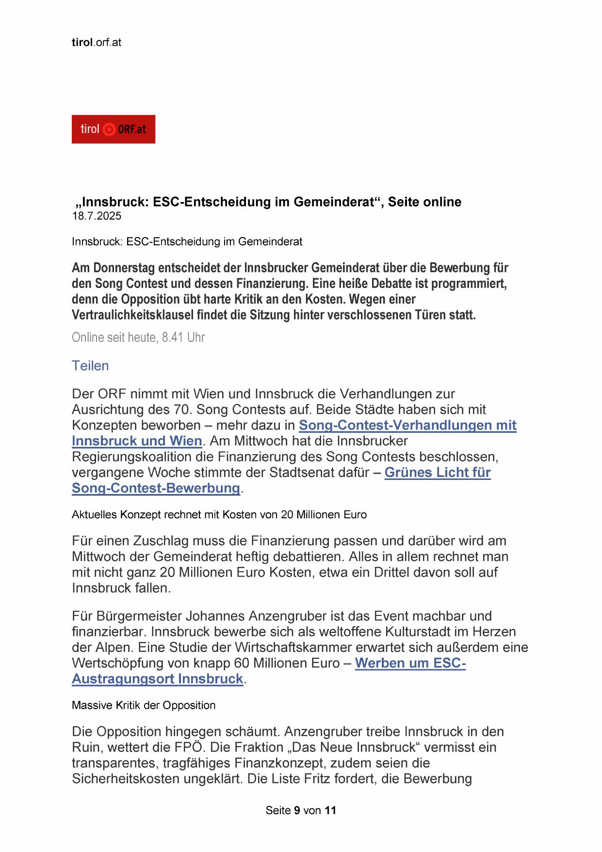 „Innsbruck: ESC-Entscheidung im Gemeinderat“, Seite online