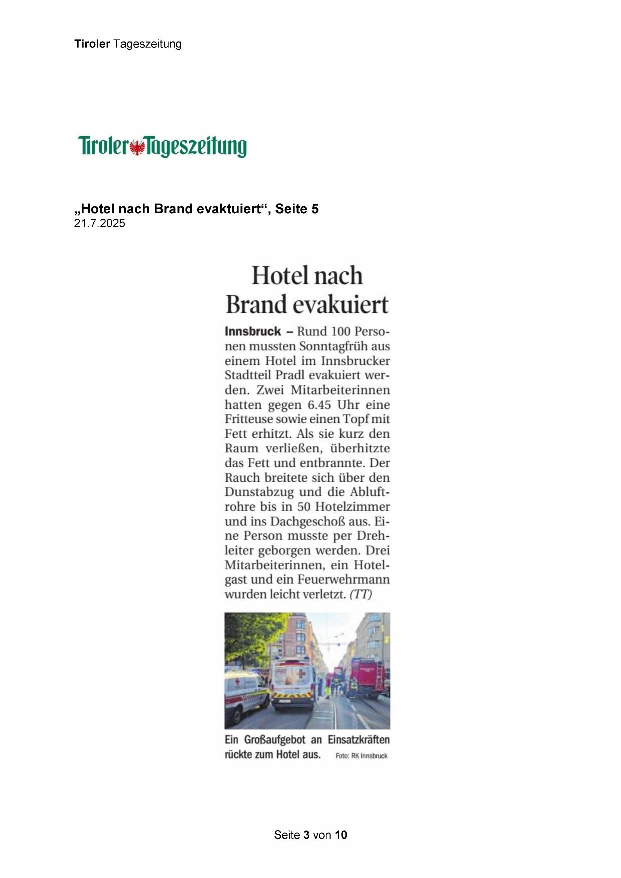 rückte zum Hotel ausS. Foto: RK Innsbruck