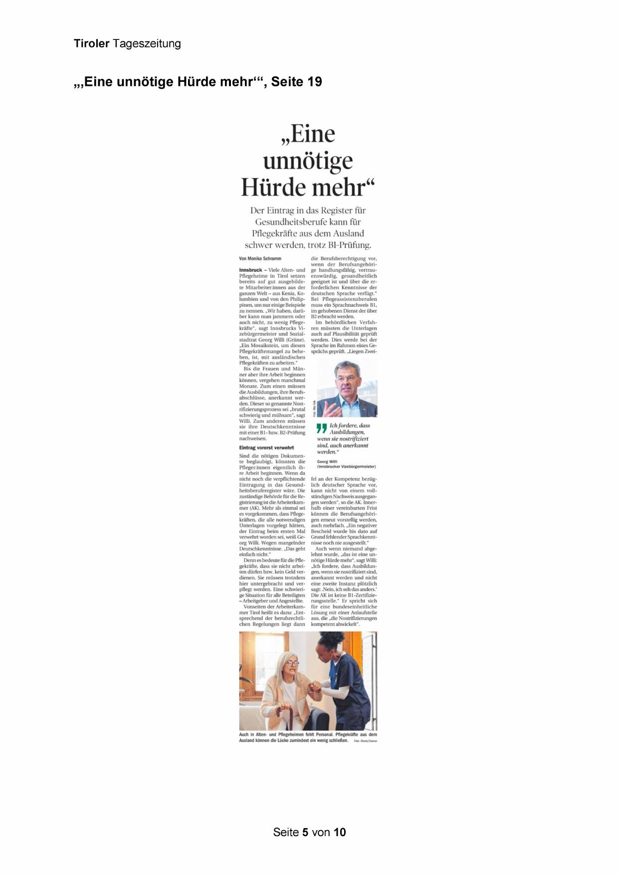 auch nicht, zu wenig Pflegekräfte“, sagt Innsbrucks Vizebürgermeister und Sozialstadtrat Georg Willi (Grüne).