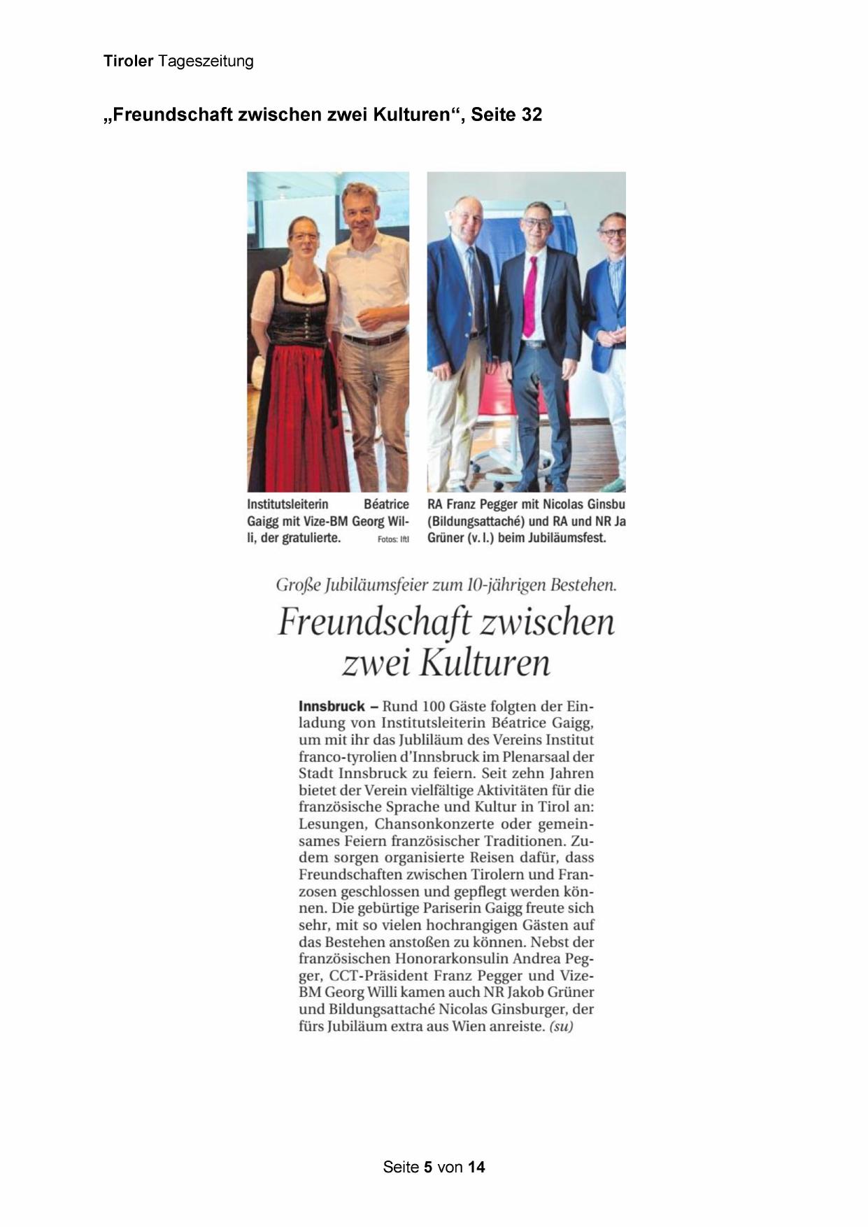 Freundschaften zwischen Tirolern und Franzosen geschlossen und gepflegt werden können. Die gebürtige Pariserin Gaigg freute sich