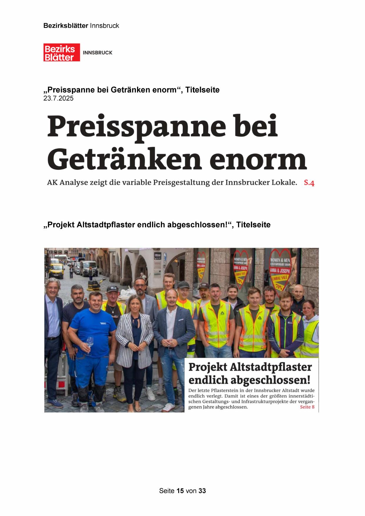 AK Analyse zeigt die variable Preisgestaltung der Innsbrucker Lokale. S.4