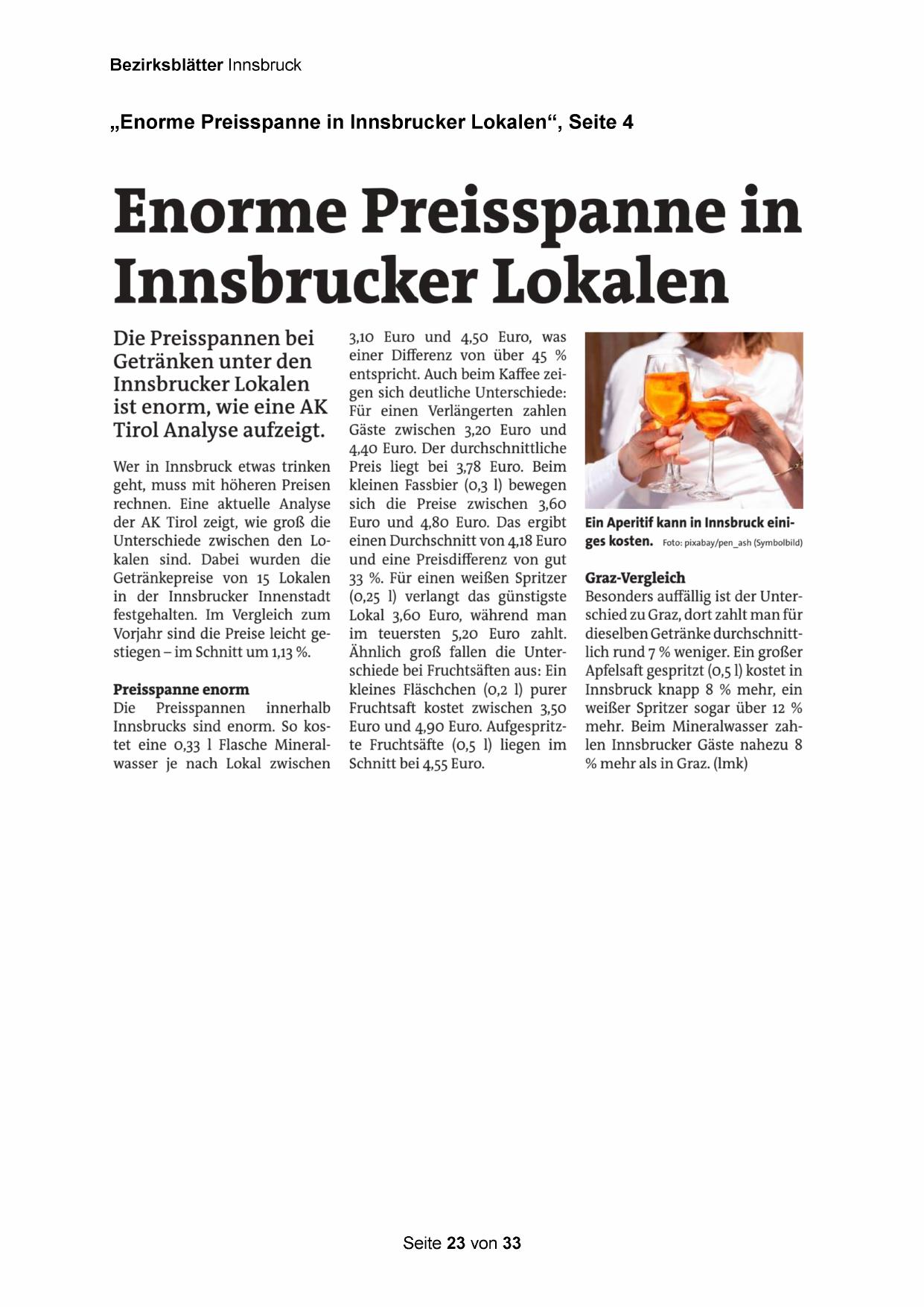 „Enorme Preisspanne in Innsbrucker Lokalen“, Seite 4