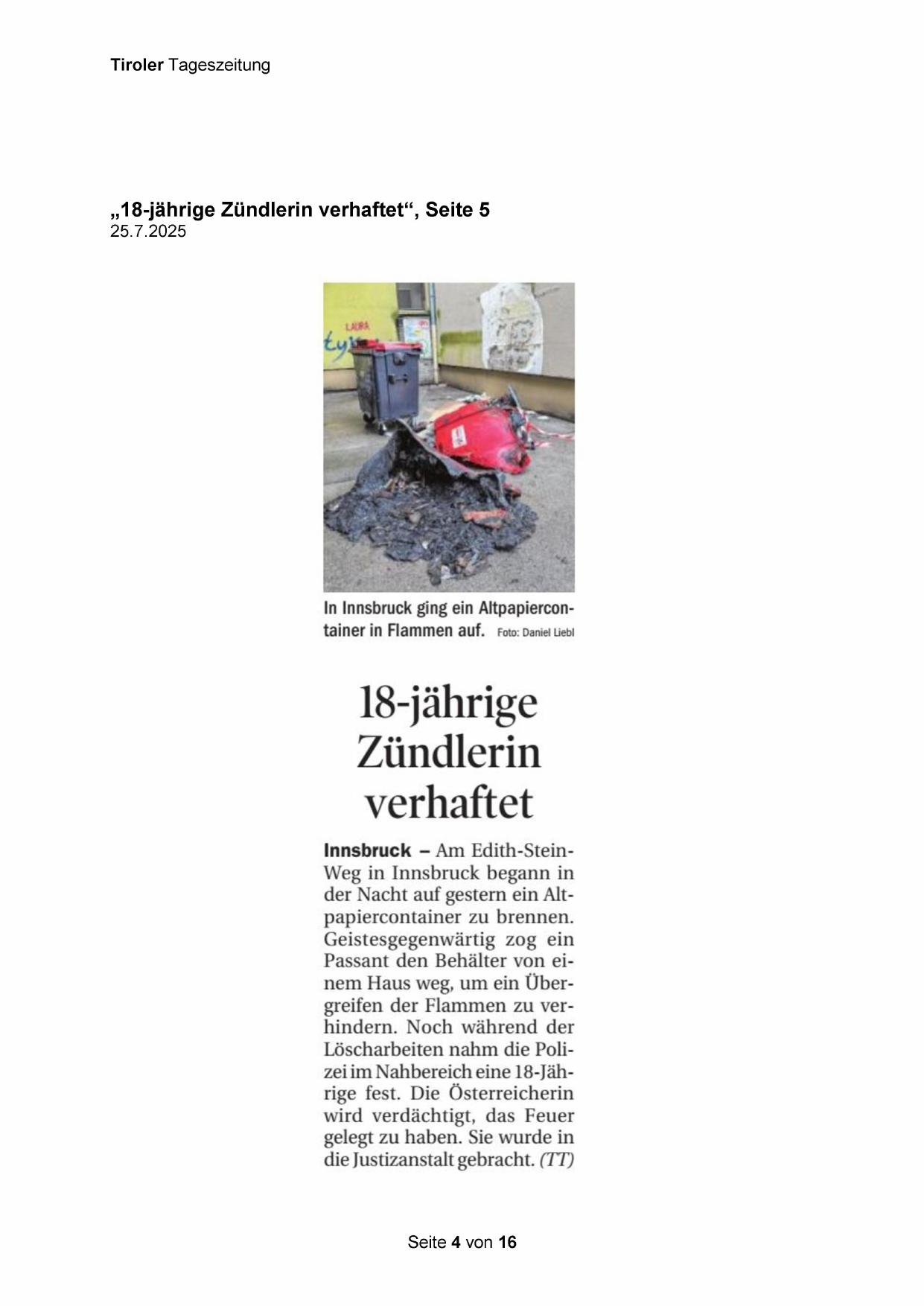 „18-Jährige Zündlerin verhaftet‘“, Seite 5